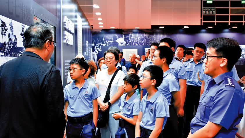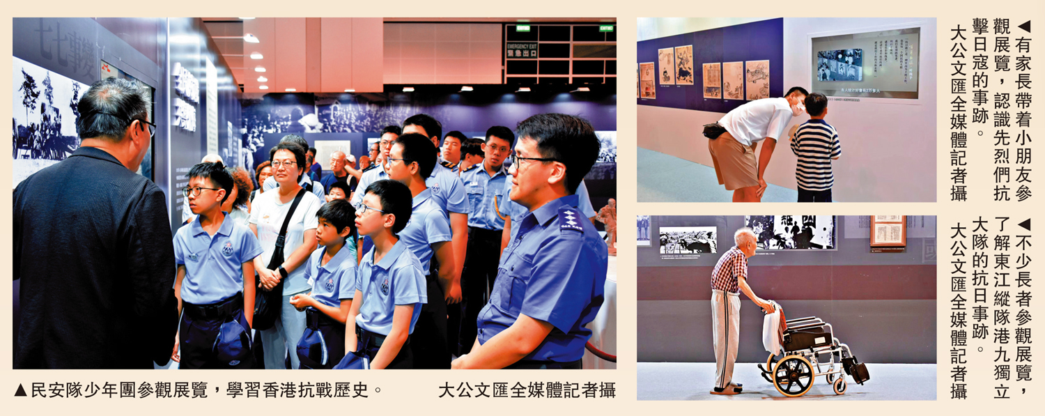 民安隊少年團A中隊長官陳嘉浩表示,臨近9月3日的中國人民抗戰勝利紀念日,因此特意組織約20名成員到場參觀展覽,其中最年輕的成員僅12歲半,「就算在學校上中史課,可能也未接觸到這段內容,所以希望他們透過展覽作補充」。