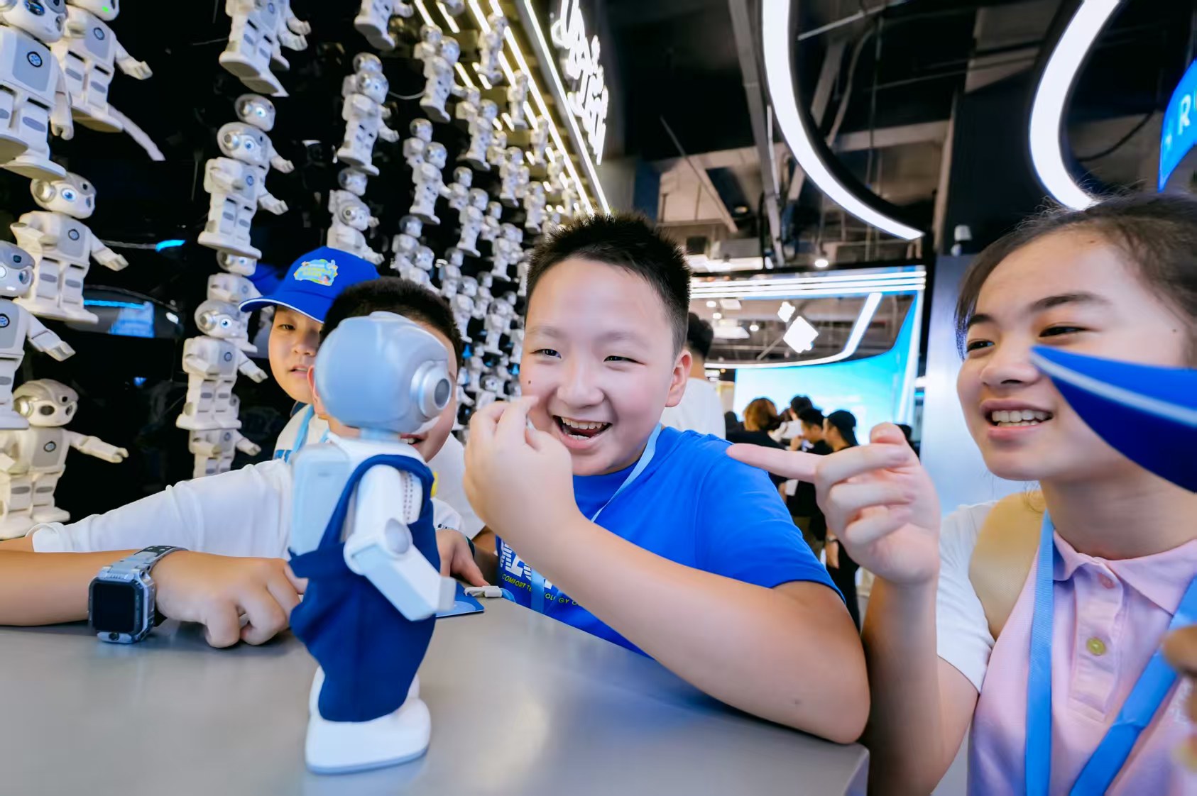 在深圳優必選,粵港澳少年們湊到不同機器人面前,看它們秀「絕活」,有能陪老人聊天、幫家長帶娃、幫做家務的家居機器人,有能在展廳引路、講解的機器人,還有頗受現場孩子們歡迎的智能貓砂盆、智能除草機。「科技猶如一雙雙隱形的手,把生活中瑣碎的皺褶撫平。」來自廣東的陳思言感嘆。