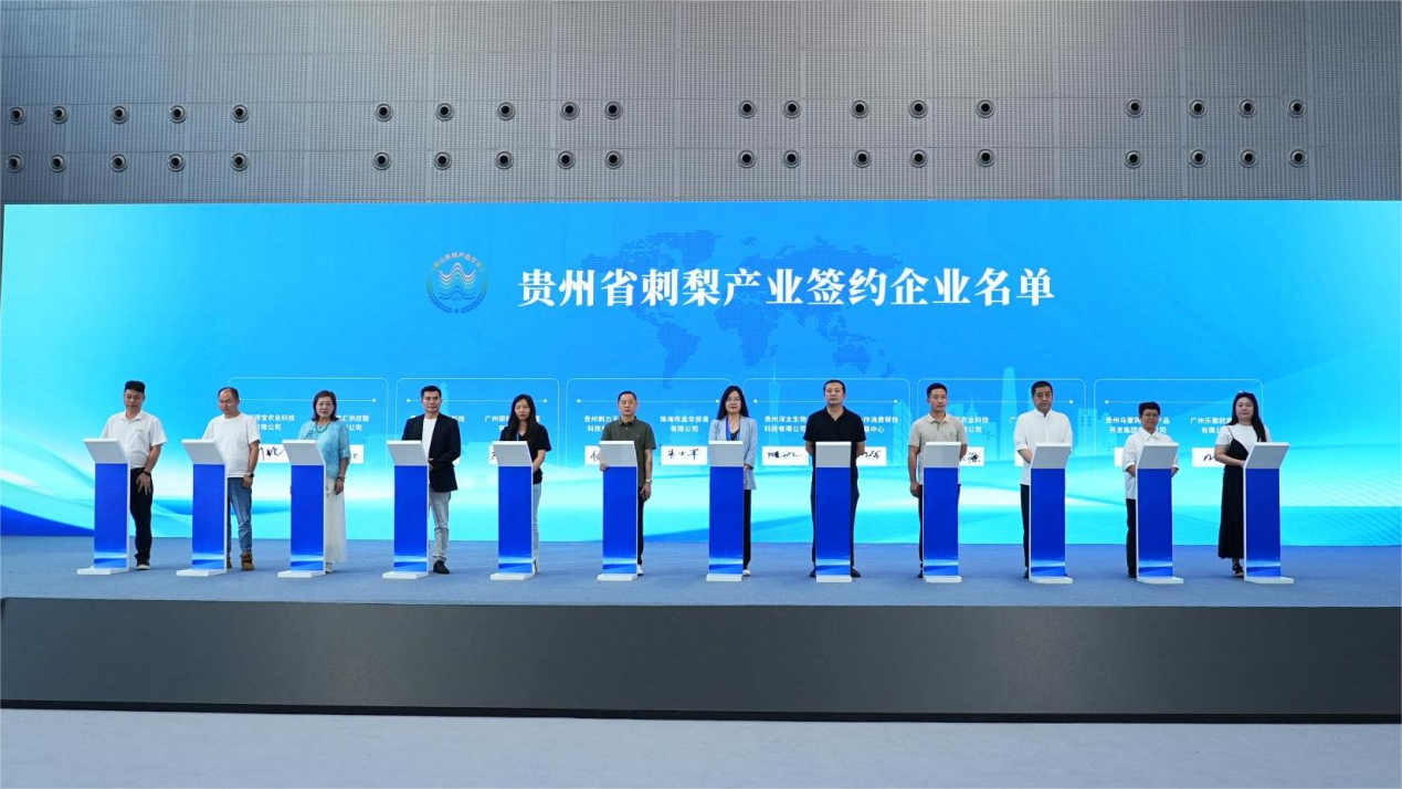 刺梨作為貴州省的特色產業之一,從深山野果變成灣區「網紅」,為貴州經濟發展注入了新活力,逐漸成為帶動該省鄉村振興的「致富果」。現場,貴州刺梨王生物科技有限公司與珠海市昌華貿易有限公司,貴州洋太生物科技有限公司與廣東區域協作消費幫扶產品交易中心,貴州烏蒙同心農產品開發集團有限公司與廣州樂聚歐商貿有限公司等12家企業分別簽署合作協議,簽約金額近3億元(人民幣)。