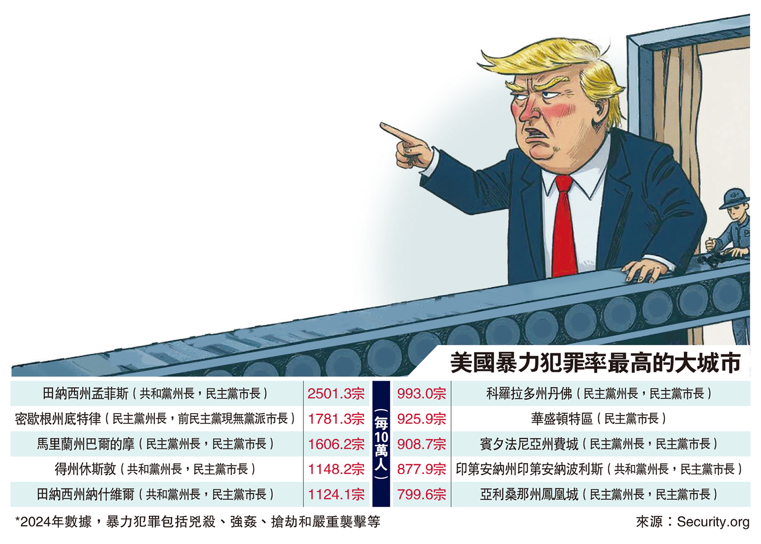 特朗普針對的華盛頓和芝加哥的確存在治安問題,但近年呈現一定的緩解態勢。華盛頓去年暴力犯罪案件數量較前一年下降35%;芝加哥今年上半年暴力犯罪案件也比去年同期減少22%。Security.org根據美國聯邦調查局(FBI)數據列出的全美大城市暴力犯罪率排行榜上,華盛頓名列第七,芝加哥未進入前十。有分析指出,特朗普故意誇大這些地區的「治安危機」,旨在壓制民主黨政治主力,鞏固保守派對自己的支持。