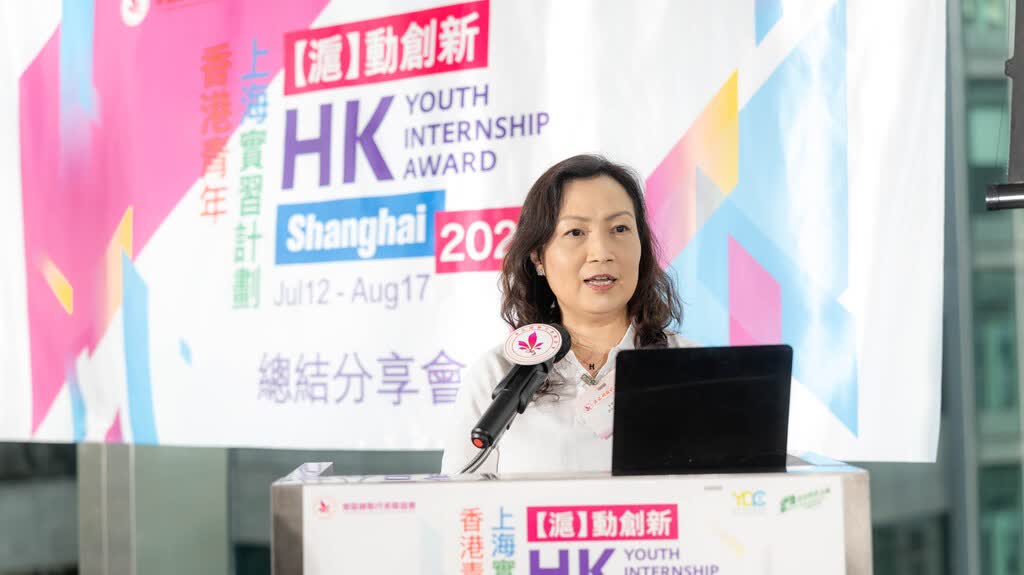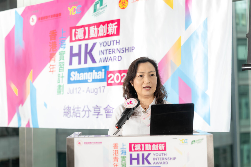 簡慧敏副會長代表港區婦聯青年事務委員會為活動致歡迎辭。她首先衷心感謝香港特區政府「民青局青年內地實習資助計劃」資助,感謝本會青年事務委員會、上海市婦聯各位姊妹對計劃一直以來的大力支持和幫助。她熱烈祝賀各位香港青年圓滿完成實習工作,親身體驗內地職場文化及深入了解國家發展成就。今年與同濟大學學生「一對一研學夥伴計劃」亦受到了廣泛好評,滬港青年在交流中結下了深厚友誼。期望實習團能繼續延續這份情誼,持續凝聚青年力量,積極為香港和國家發展多作貢獻。