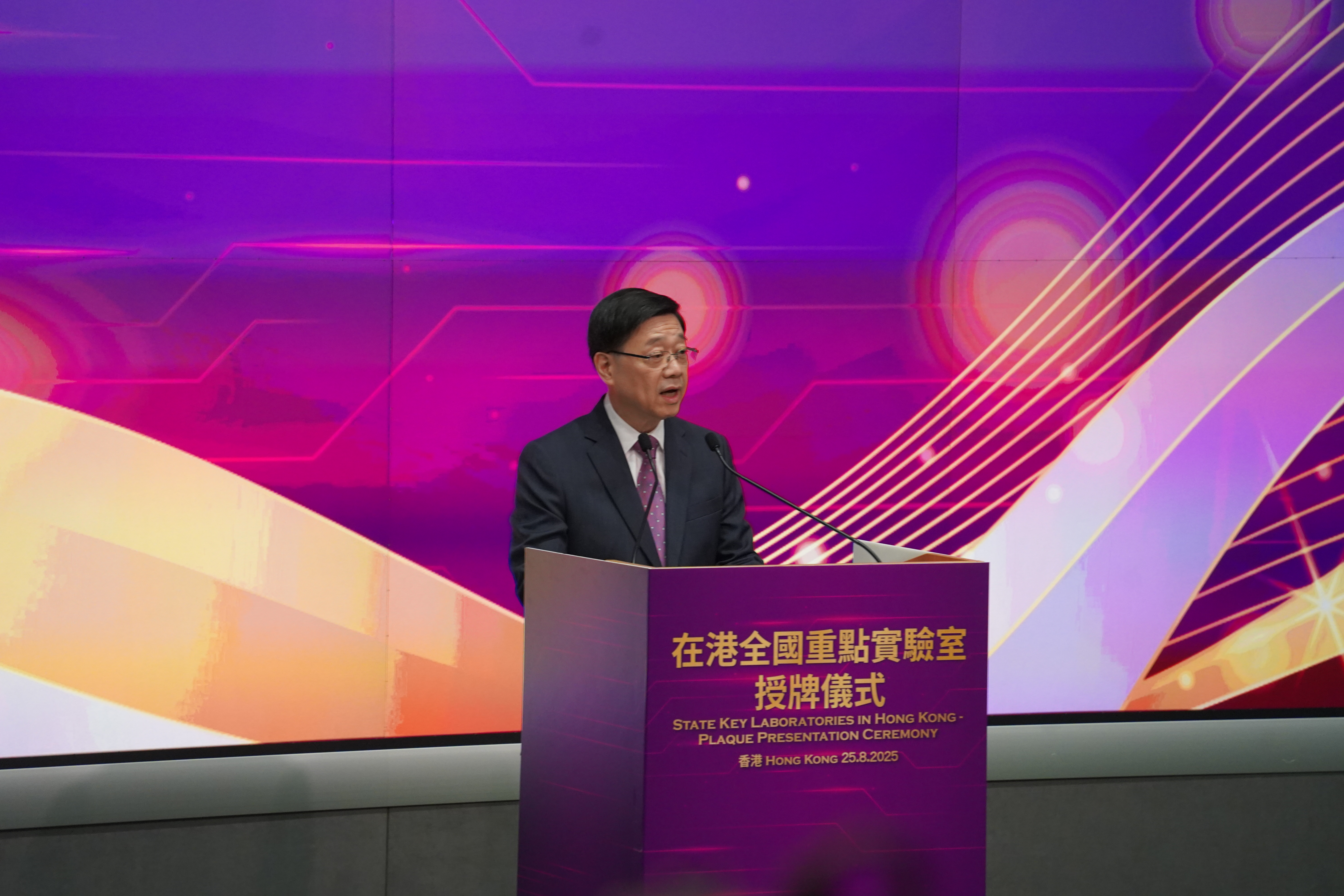 李家超在致辭中表示,此次授牌充分體現國家對香港創新科技發展的高度重視和堅定支持。他指出,香港擁有5所世界百強大學,基礎科研實力雄厚,全國重點實驗室的團隊匯聚全球頂尖學者,彰顯香港卓越的科研實力與創新活力。