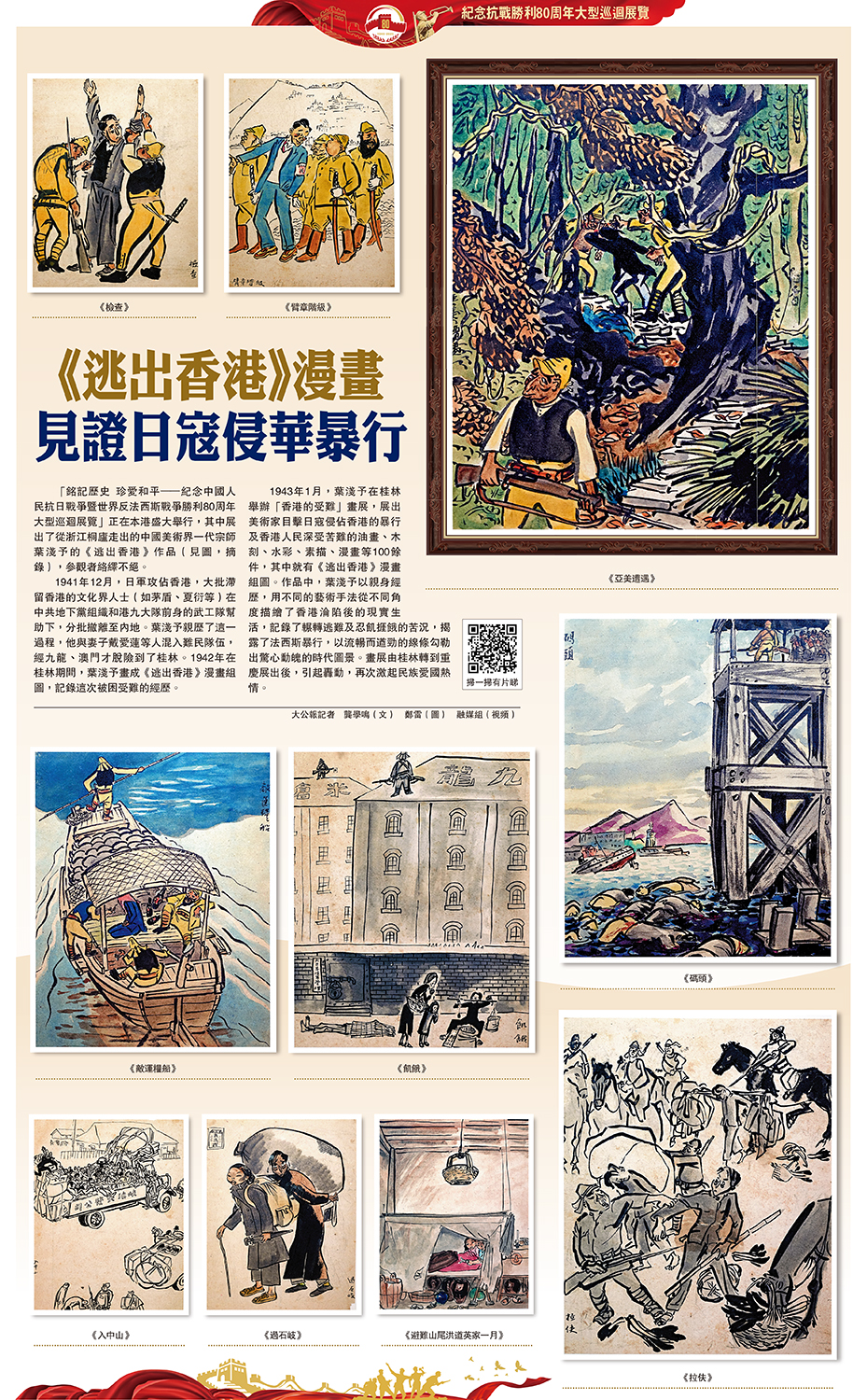 (大公報記者 龔學鳴、鄭雷)「銘記歷史 珍愛和平──紀念中國人民抗日戰爭暨世界反法西斯戰爭勝利80周年大型巡迴展覽」正在本港盛大舉行,其中展出了從浙江桐廬走出的中國美術界一代宗師葉淺予的《逃出香港》作品,參觀者絡繹不絕。