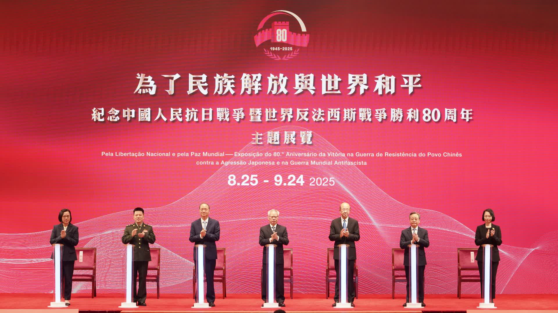 (大公文匯網記者 鍾佩欣)由澳門特區政府主辦的「為了民族解放與世界和平──紀念中國人民抗日戰爭暨世界反法西斯戰爭勝利八十周年」主題展覽,今(25)日早上舉行揭幕儀式,澳門行政長官岑浩輝,國務院港澳辦副主任、中央政府駐澳門聯絡辦公室主任鄭新聰等出席作主禮嘉賓。主題展覽於今日下午全面開放予公眾參觀,展期至9月24日。