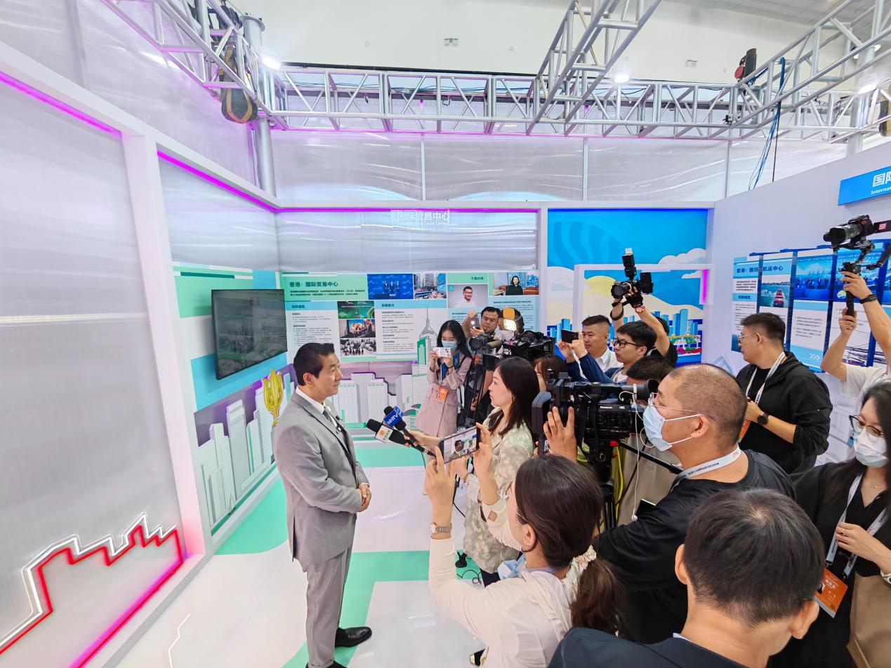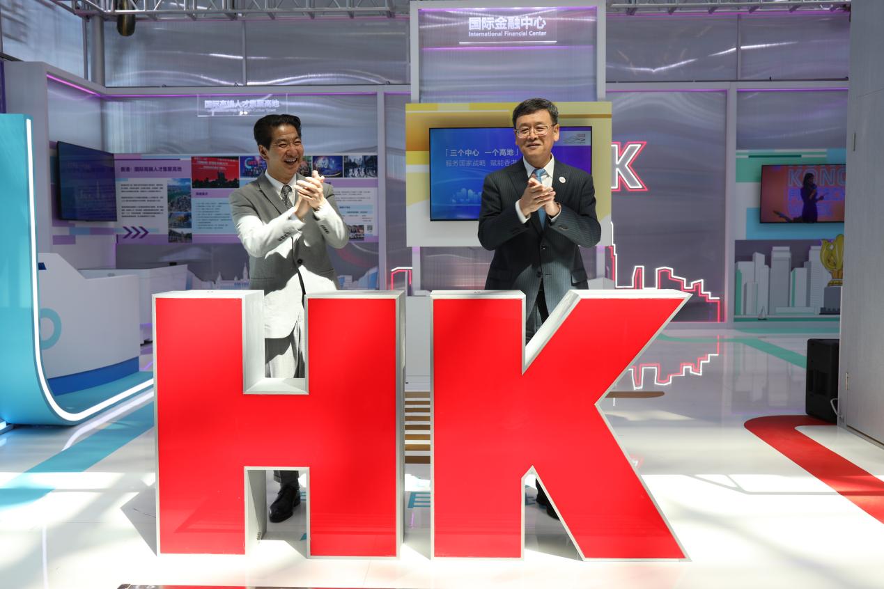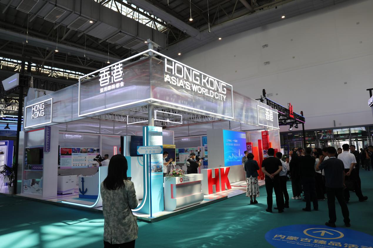 本次博覽會上,香港主題展區設計以彩色立方體為核心視覺符號,五個不同顏色的展區分別代表「一國兩制」、國際金融、航運、貿易中心,以及國際高端人才集聚高地,展示了香港在上述不同領域的獨特優勢。「回」字型布局象徵着香港是連接國家與世界的樞紐門戶。設計詮釋了香港「三個中心、一個高地」的戰略定位,展現其「服務國家 賦能未來」的蓬勃動能。現場除了提供有關香港金融、航運、貿易領域的最新信息,招賢納才方面的最新政策,還設有特色拍照打卡區,以及航運主題多媒體遊戲。
