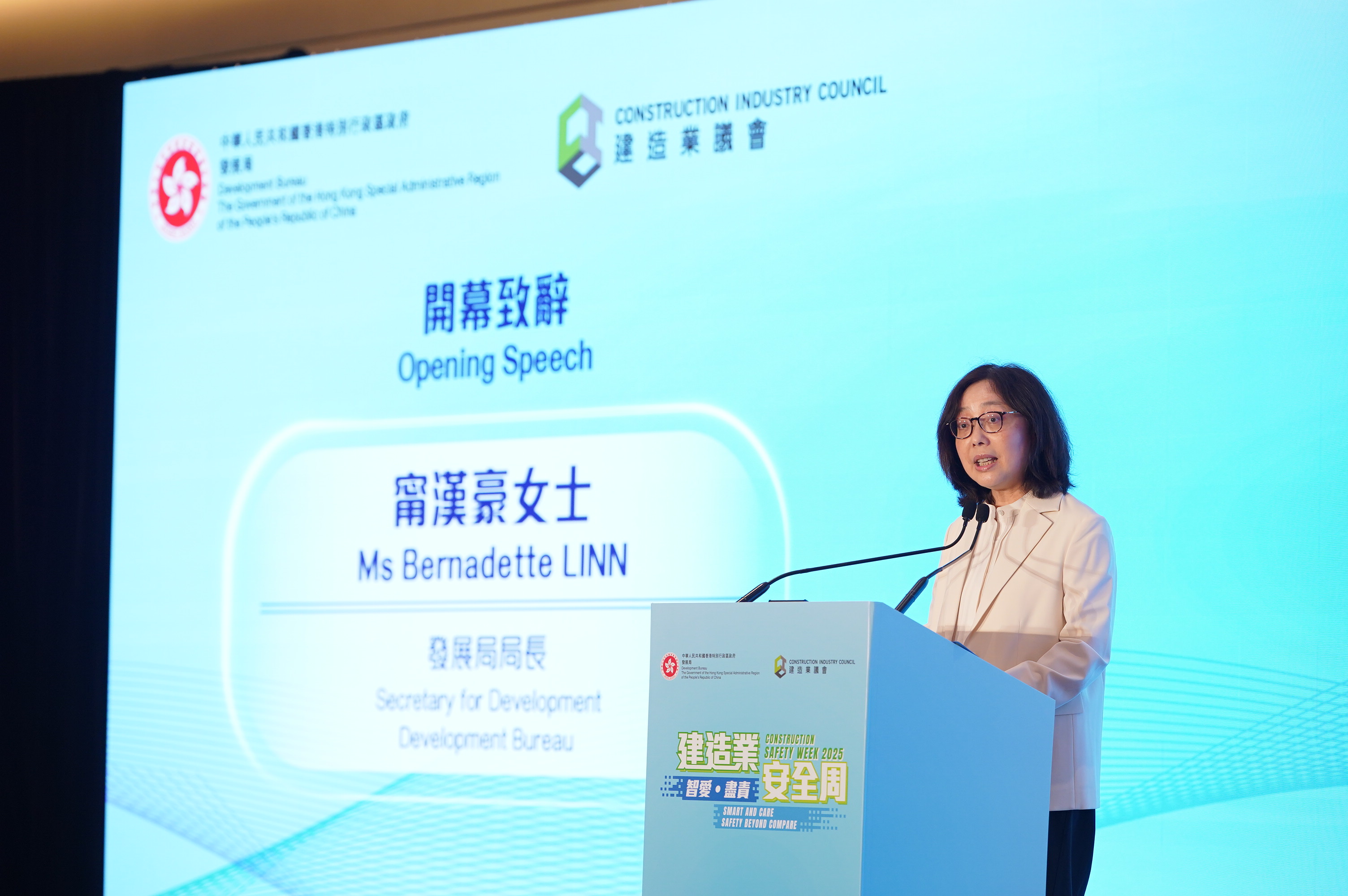 發展局局長甯漢豪在開幕典禮致辭時《論語》提及的「智、仁、勇」三種修養,闡述推動工地安全的原則。她提到,政府近年致力推動創新科技應用和工地安全智能化,亦大力推動整個建造業界全面應用「安全智慧工地」系統(4S),至今已有超過600個公私營工地獲得4S標籤。當局亦透過建造業創科基金,至今成功推動超過八成半參與公私營工程的流動機械和塔式起重機的擁有人,申請基金安裝有關警報系統。