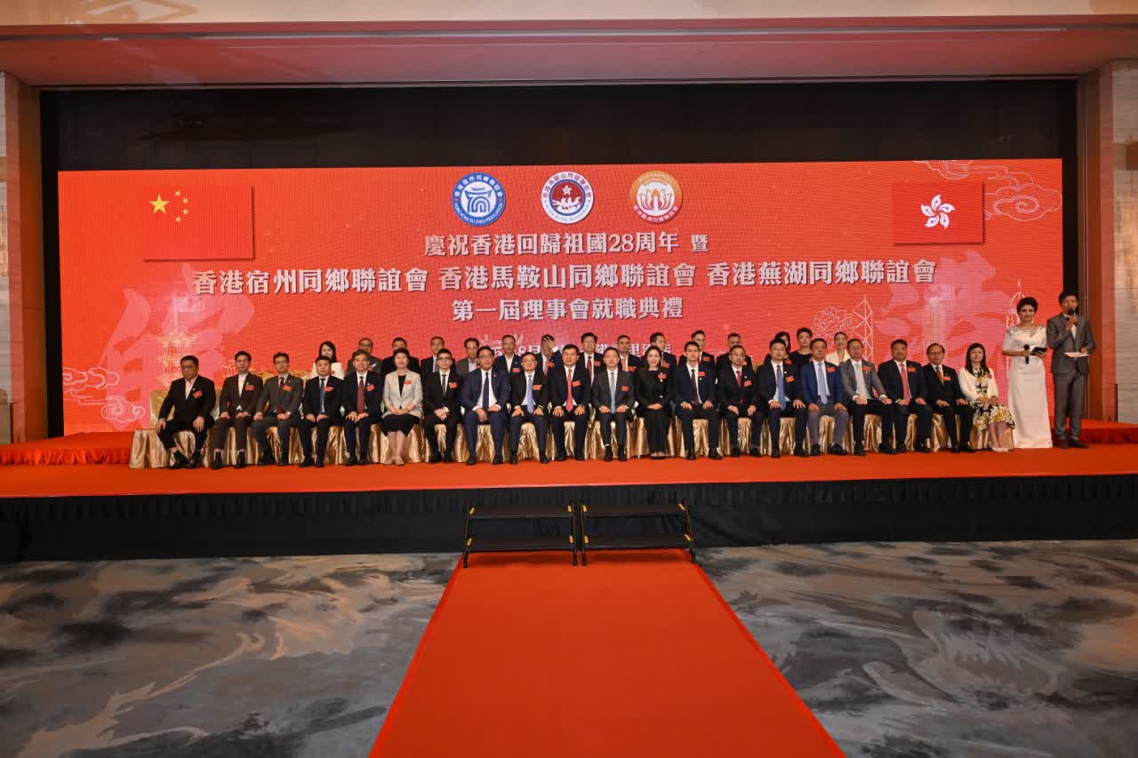 8月23日,香港宿州同鄉聯誼會、香港馬鞍山同鄉聯誼會、香港蕪湖同鄉聯誼會假紅磡嘉里酒店舉辦「慶祝香港回歸祖國28周年暨香港宿州同鄉聯誼會 香港馬鞍山同鄉聯誼會 香港蕪湖同鄉聯誼會 第一屆理事會就職典禮」。香港特區政府民政及青年事務局副局長梁宏正,中央政府駐港聯絡辦社團聯絡部部長蘇玉軍、港島工作部副部長尤斌,全國政協常委、中國和平統一促進會香港總會會長姚志勝,港區全國人大代表、香港行政會議成員、立法會議員吳秋北,安徽省委統戰部常務副部長張永,香港安徽聯誼總會會長方方,宿州市政府副市長、民進宿州市委會主委楊澤勝,馬鞍山市政府副市長強家寧,蕪湖市委常委、統戰部部長后名文等出席並主禮。香港宿州同鄉聯誼會創會會長蔡萬方、香港馬鞍山同鄉聯誼會創會會長梁鎮東、香港蕪湖同鄉聯誼會創會會長董貺漄率首屆理事會成員宣誓就職,矢志凝聚鄉親力量,發揚「愛國愛港愛鄉」精神,共促皖港交流與合作。