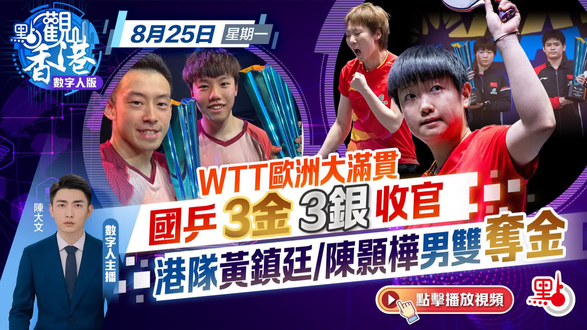 大公文匯全媒體報道,今天我們先來關注WTT歐洲大滿貫。本港時間今日(25日)凌晨,WTT歐洲大滿貫瑞典站賽程全部結束,國乒在今屆賽事共捧得3金3銀,港隊男雙組合黃鎮廷/陳顥樺奪得男雙金牌。