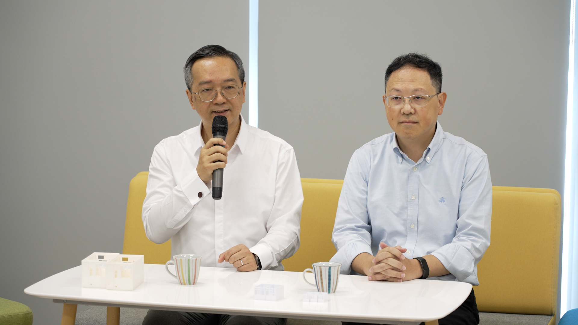 戴尚誠介紹,項目採用「組裝合成」建築法(MiC)及「機電裝備合成法」(MiMEP),大幅提升施工效率。高峰期每日可安裝55個MiC箱,平均每3天完成一層標準層,約60個單位。此外,MiC升降機槽技術使機械設備提前在工廠組裝,較傳統模式節省約30天安裝及驗收時間。王安華指出,此設計如「砌積木」,95%組件可於拆卸後重用,符合簡約公屋臨時性質與環保目標。此外,本港暴雨頻發,防水測試也不容忽視。戴尚誠表示,每個組裝合成的箱體都會經過防水測試,安裝之後也有補檢。