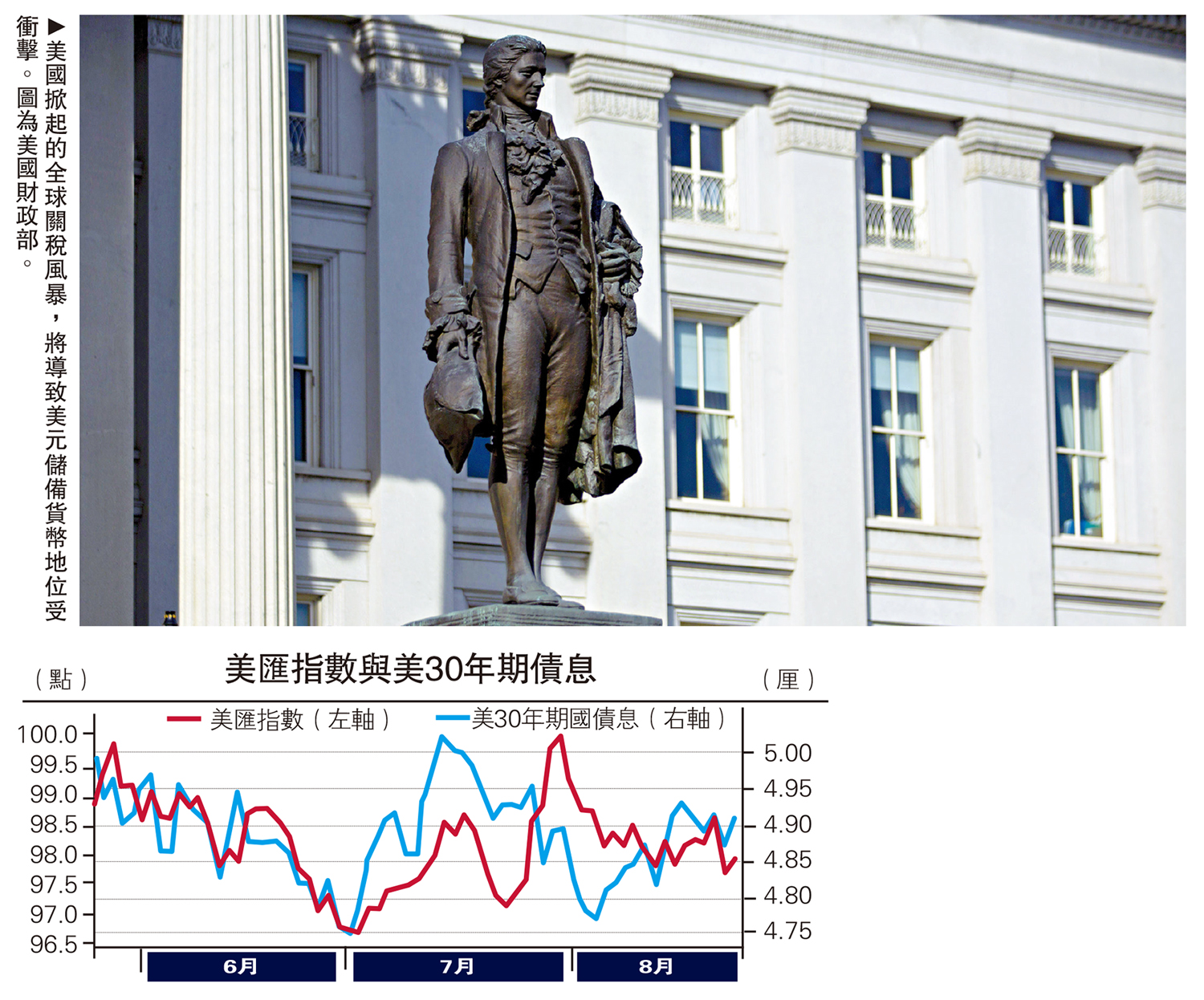 儘管美元國際地位不是美國政府當前最關心的事情,但仍是比較在意的事項。如日前美國以某區域組織建立是為了傷害美元為由,曾威脅對其成員徵收10%的進口稅。然而,美國政府掀起的全球關稅風暴或重置全球貿易體系和國際貨幣體系,其後果是:美國政府減貿易逆差的政策越有效,就越有可能衝擊美元的儲備貨幣地位。