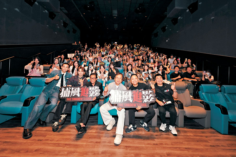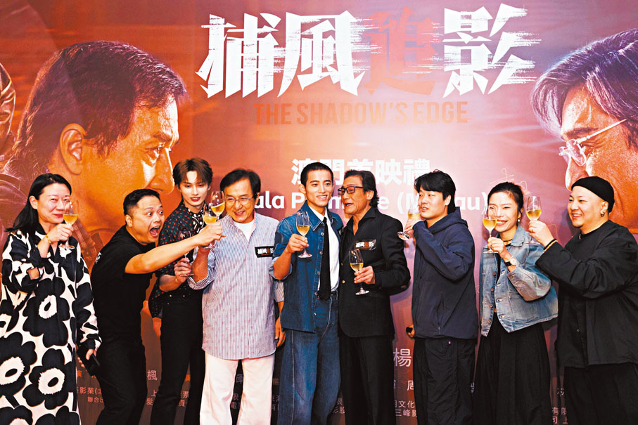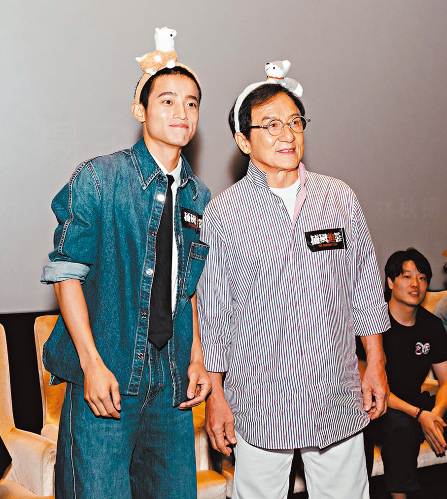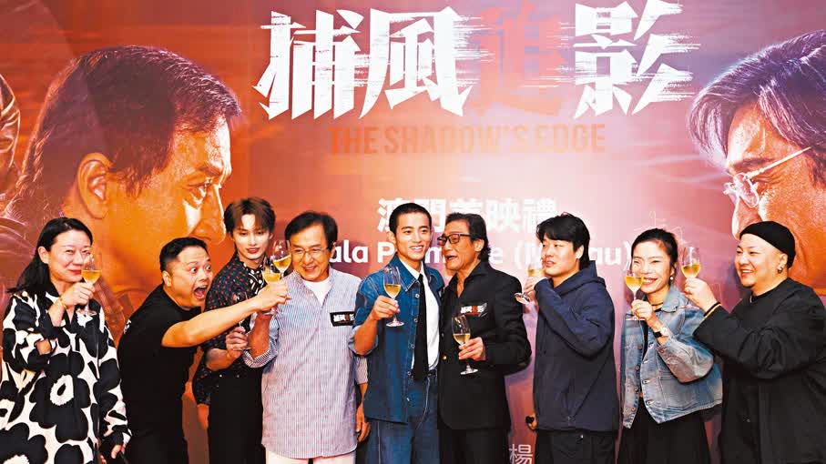 (香港文匯報 記者梁靜儀、攝影孫嘉蔚)成龍(大哥)與梁家輝相隔20年再度合作電影《捕風追影》,前晚聯同導演楊子、韓國男團Seventeen成員文俊輝及周政杰於澳門出席首映禮,吸引不少粉絲圍觀。成龍更走到台下與場外的粉絲擊掌,有女粉絲更成功集郵。成龍大讚梁家輝表現出色,可拿來屆「最佳動作新人獎」,並透露明年將與奧斯卡影后楊紫瓊在港合作新戲,亦希望有機會再與張曼玉合作。