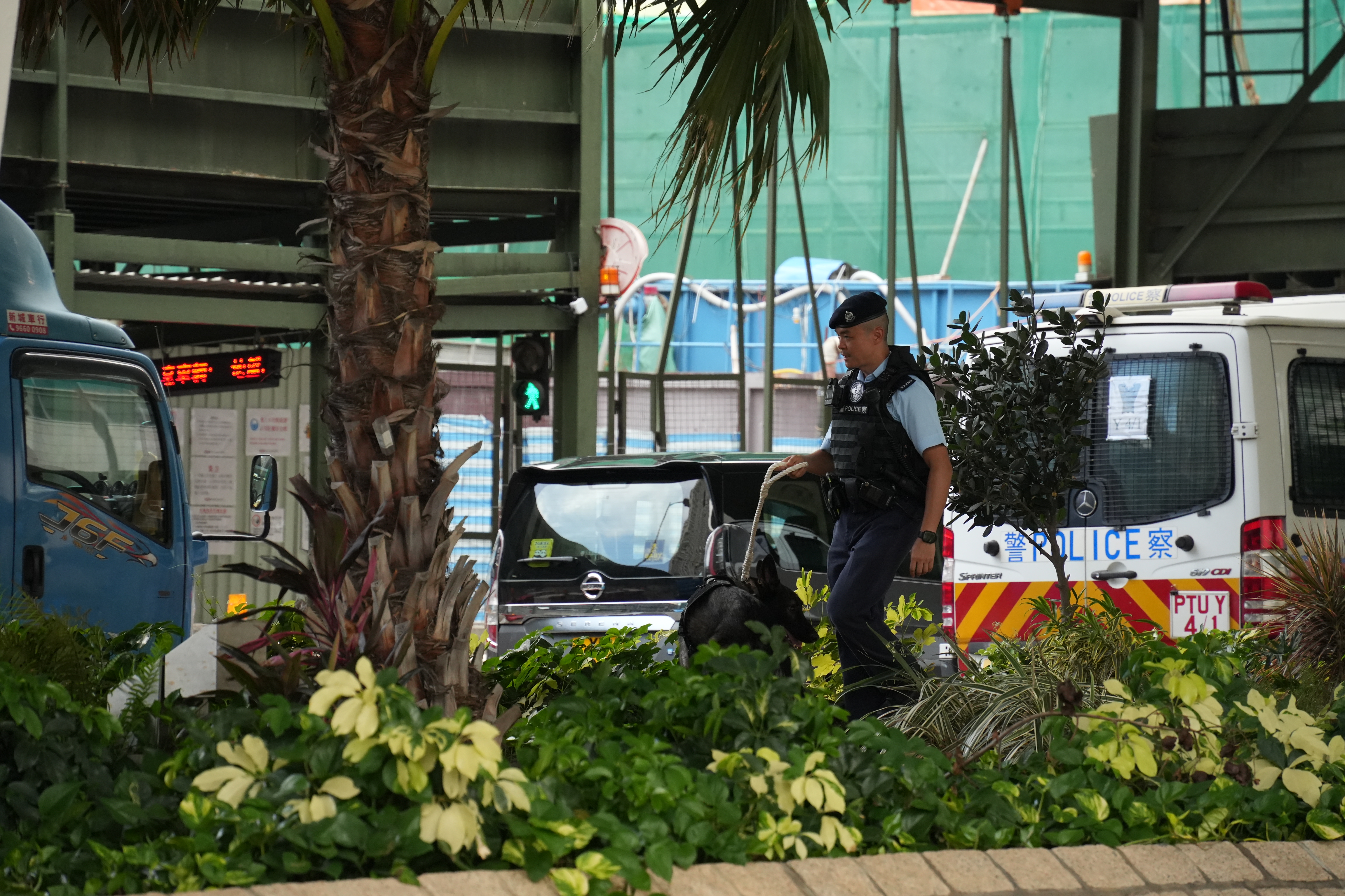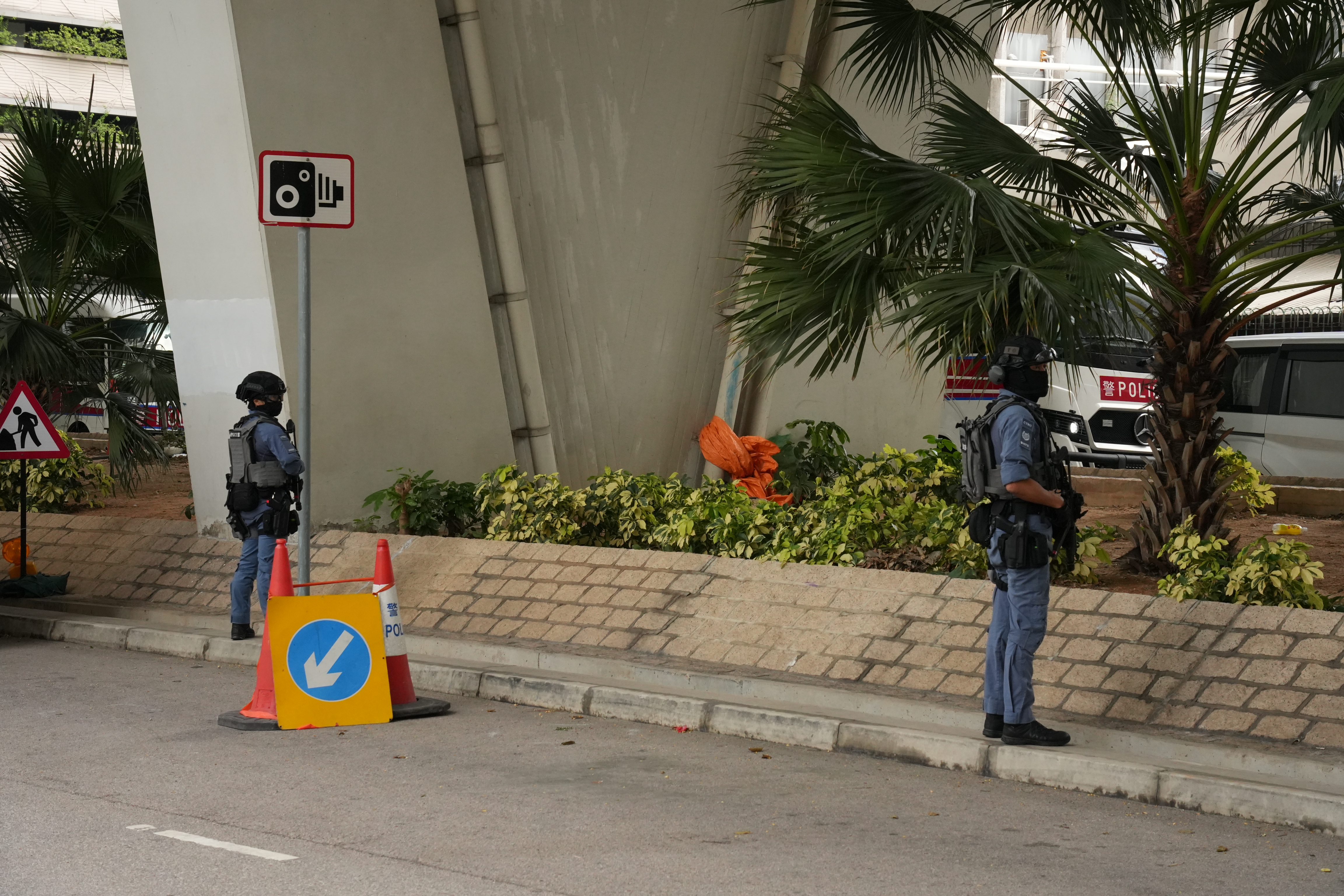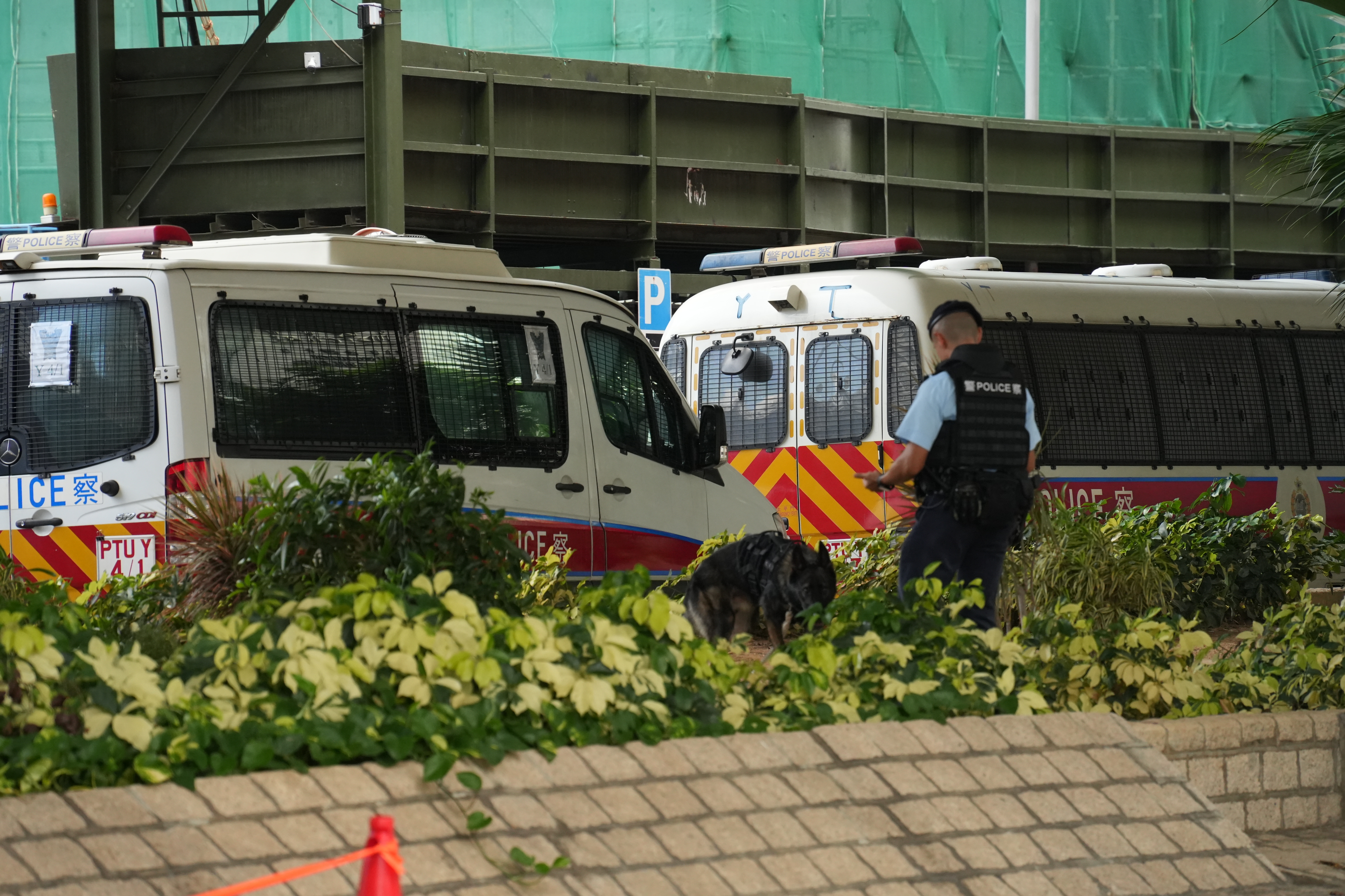 上午9時18分左右,載有黎智英的「鐵甲威龍」囚車抵達西九龍裁判法院,並且有反恐特勤隊隊員持槍戒備。除此之外,法院外保安措施顯著加強,至少十多輛警車駐守戒備,數十名穿着防刺戰術背心的警員在場巡邏,有警犬協助執勤搜索。同時,警方在法院外圍設置警崗,對可疑車輛進行搜查,確保沒有危險物品。