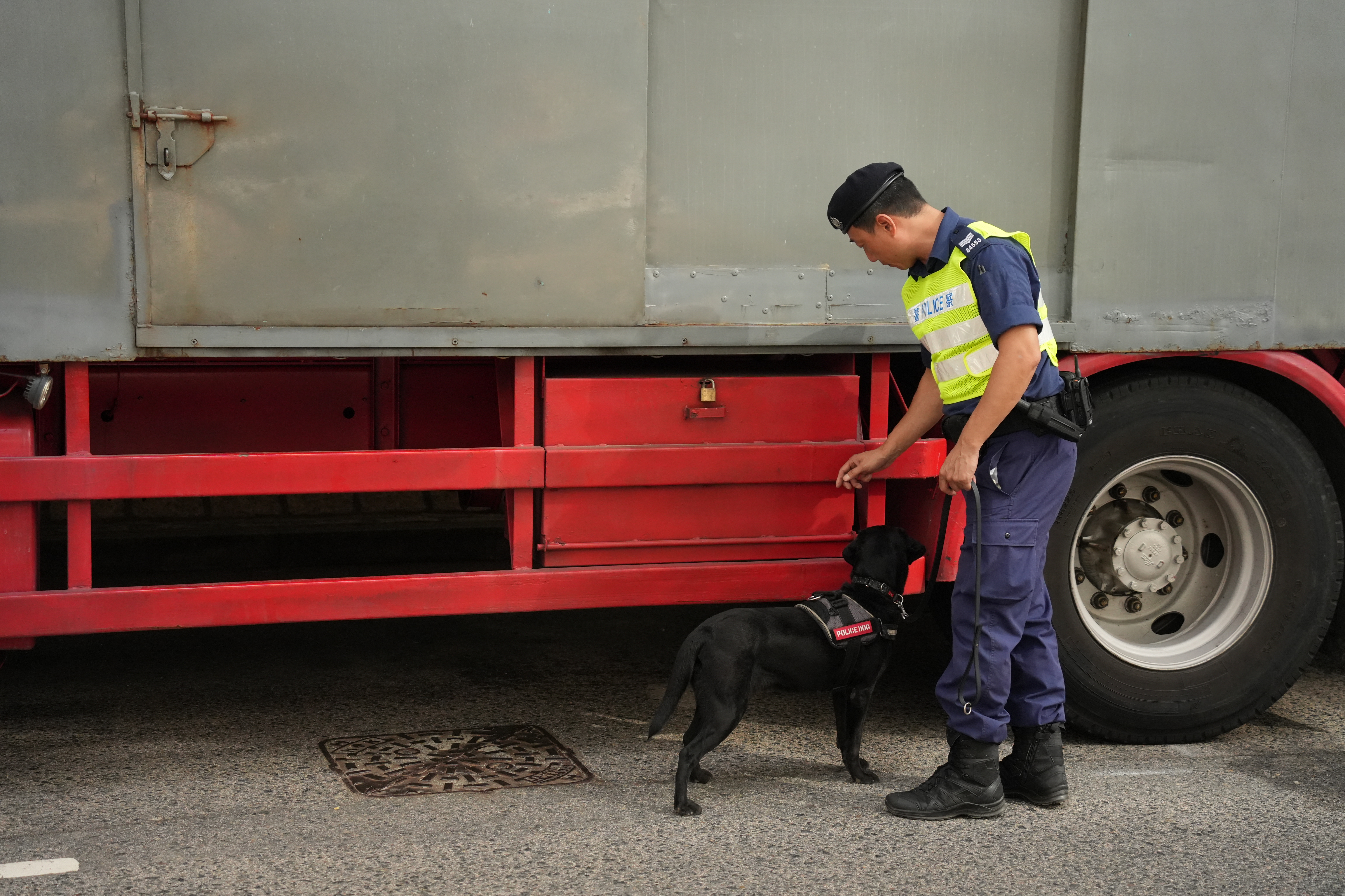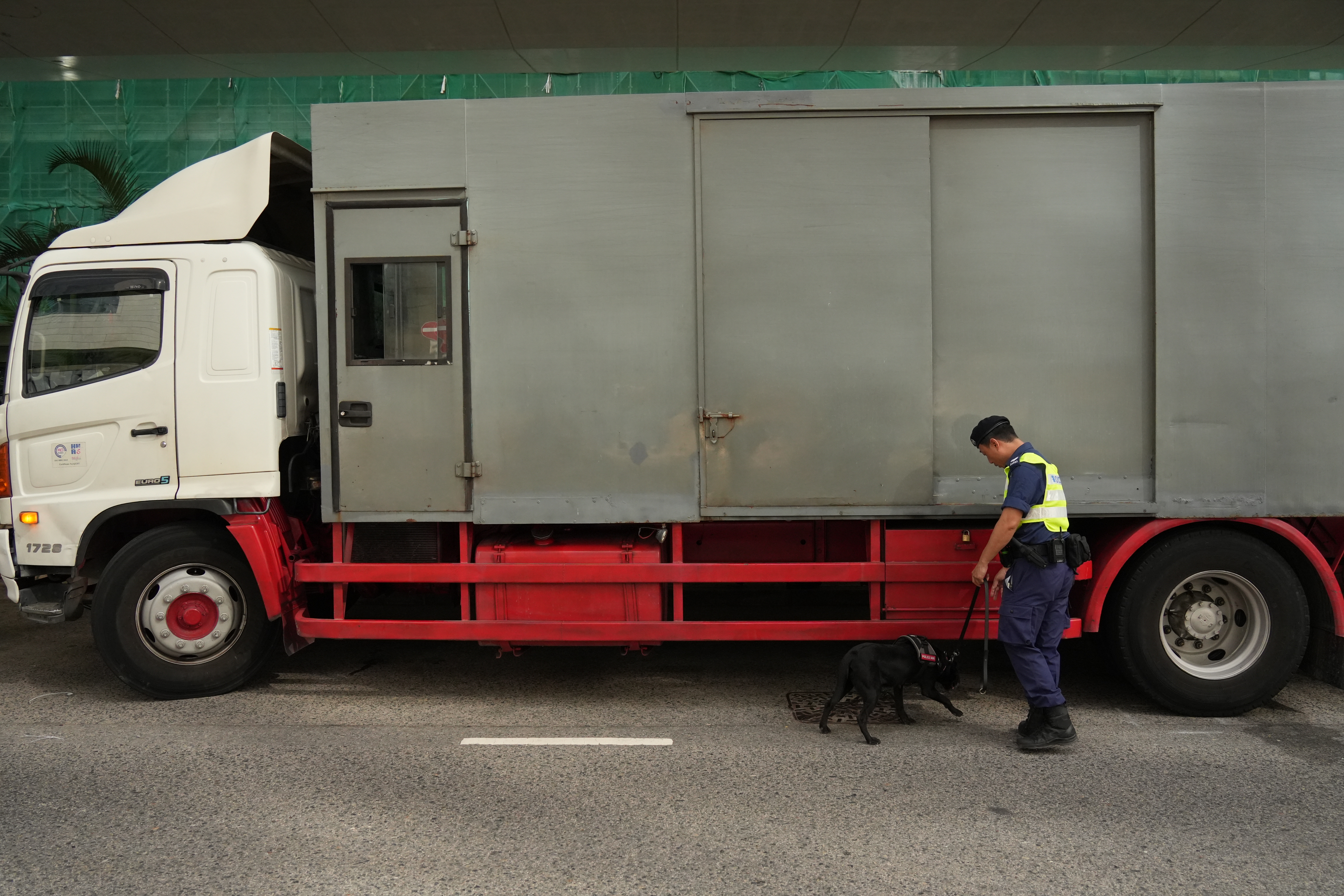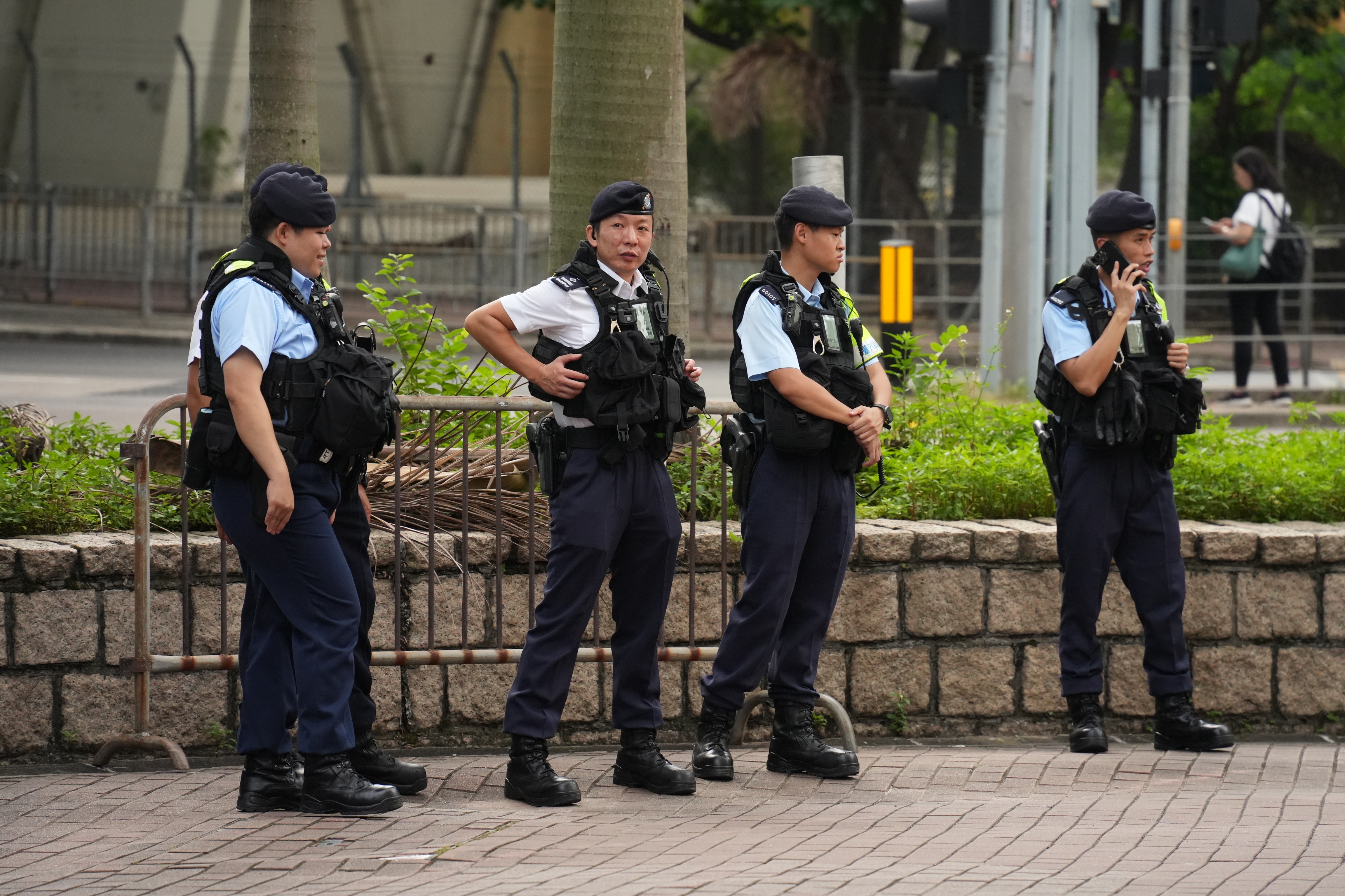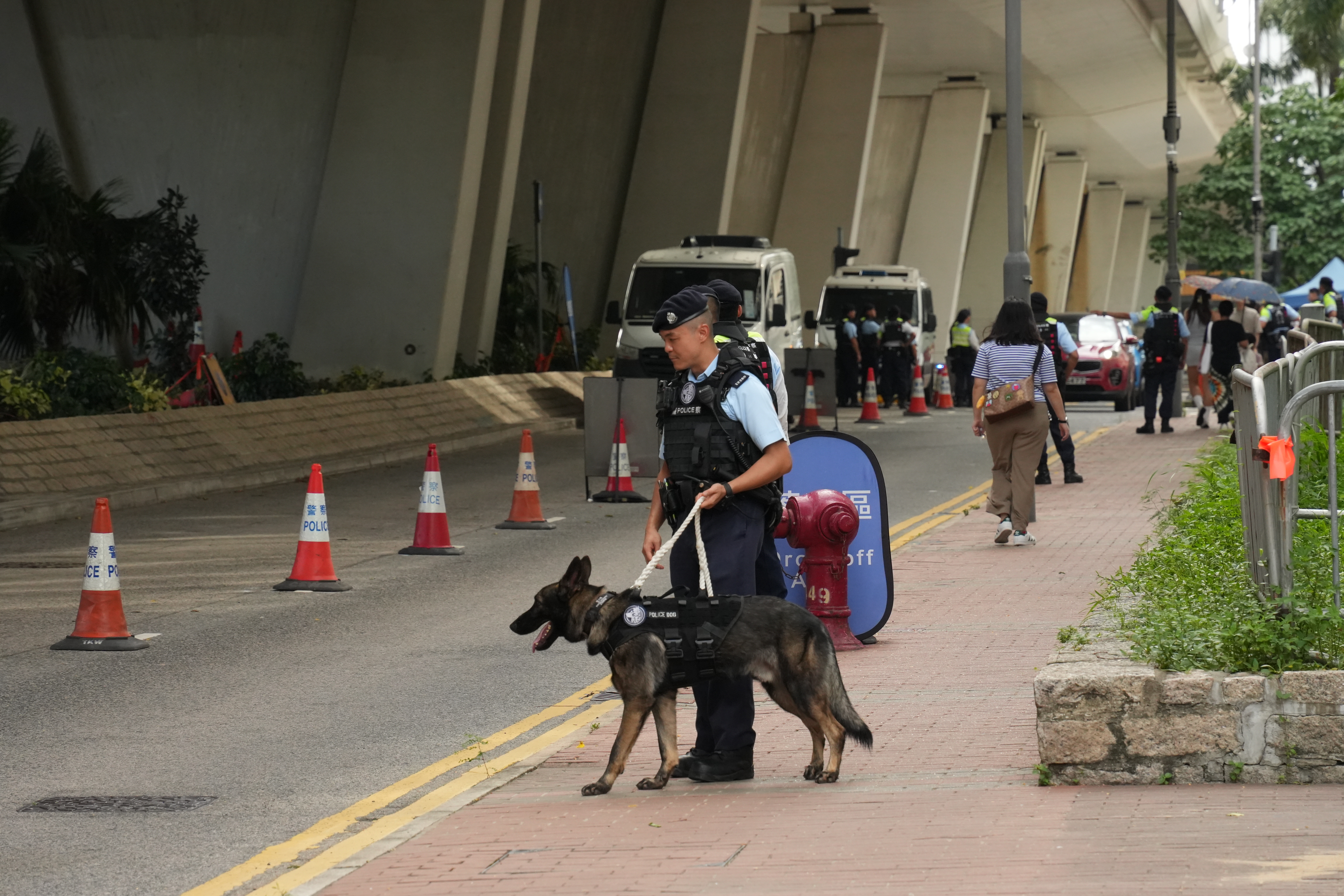 上午9時18分左右,載有黎智英的「鐵甲威龍」囚車抵達西九龍裁判法院,並且有反恐特勤隊隊員持槍戒備。除此之外,法院外保安措施顯著加強,至少十多輛警車駐守戒備,數十名穿着防刺戰術背心的警員在場巡邏,有警犬協助執勤搜索。同時,警方在法院外圍設置警崗,對可疑車輛進行搜查,確保沒有危險物品。