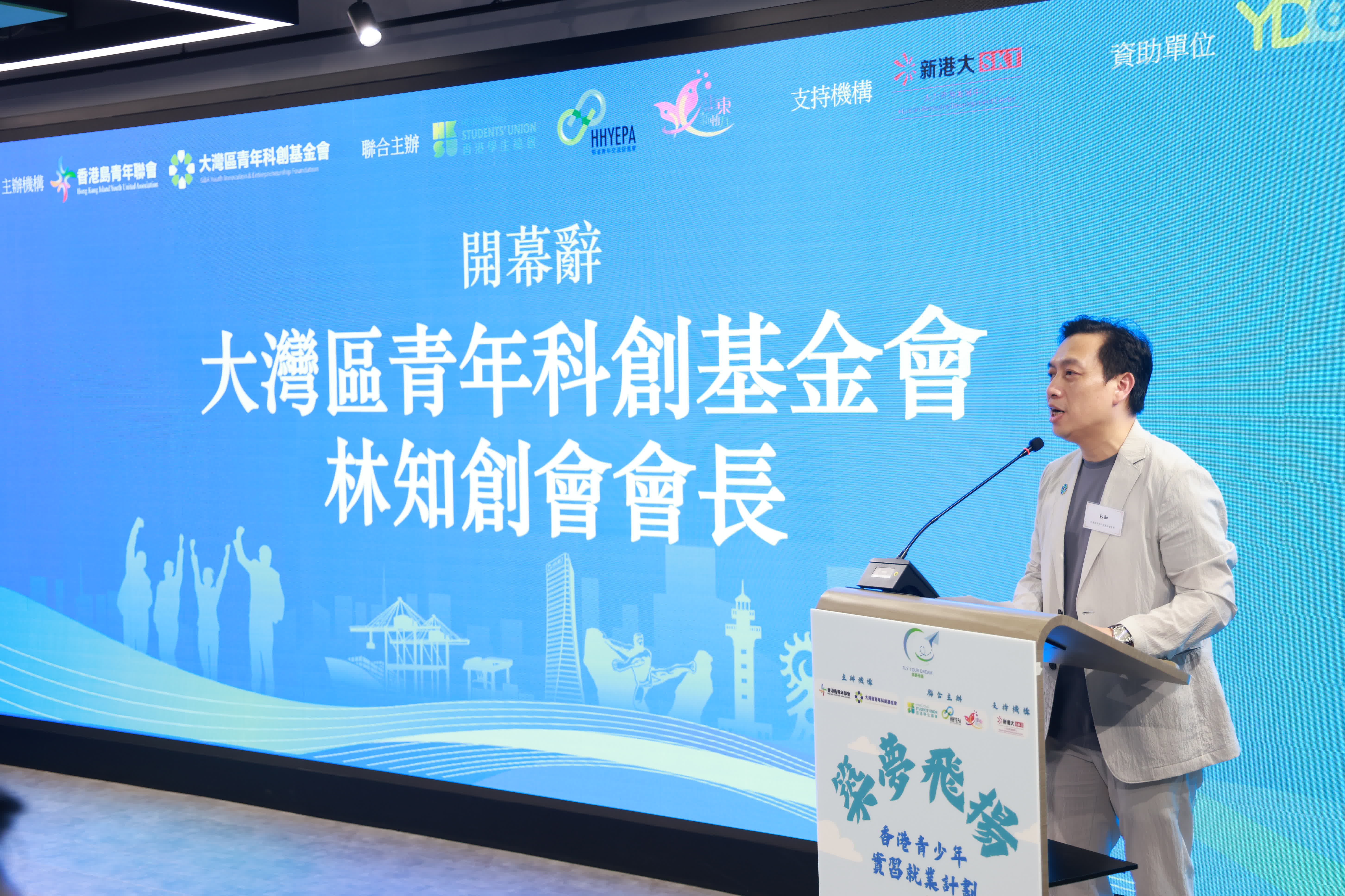 隨後青創會創會會長林知先生致辭,他非常欣喜看到本屆計劃的實習地點成功擴展到更多城市,參與和被錄取的學生數量大幅提升,他希望未來有更多香港青少年踴躍參與,在實習就業計劃中開拓視野、累積經驗、提升自我,更好地在灣區融合發展、香港轉型科創的新時代中挑戰機遇、實現自身價值。