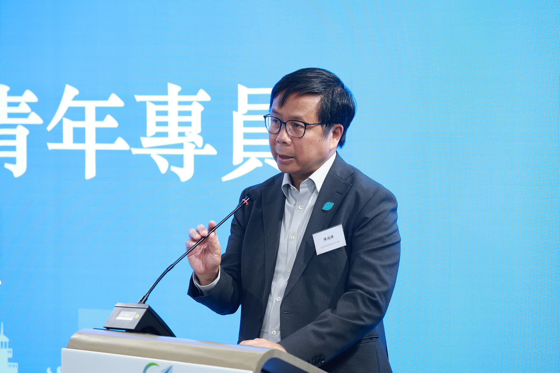 隨後,香港特區政府民政及青年事務局青年專員(「民青局」)陳瑞緯先生發言表示,非常榮幸能夠第二次出席「築夢飛揚」實習就業計劃結業禮,與青年朋友共同分享成果與喜悅。他強調,特區政府近年持續推動香港青年加深對國家發展大局的認識,增強家國情懷,並推出多項資助計劃予以支持。「築夢飛揚」計劃為青年提供了走進內地職場、體驗生活及深入了解內地的寶貴平台,意義深遠。他深信青年將從中獲益良多,並勉勵大家夯實基礎、把握機遇、不斷提升自我,為香港與國家發展作出更大貢獻。