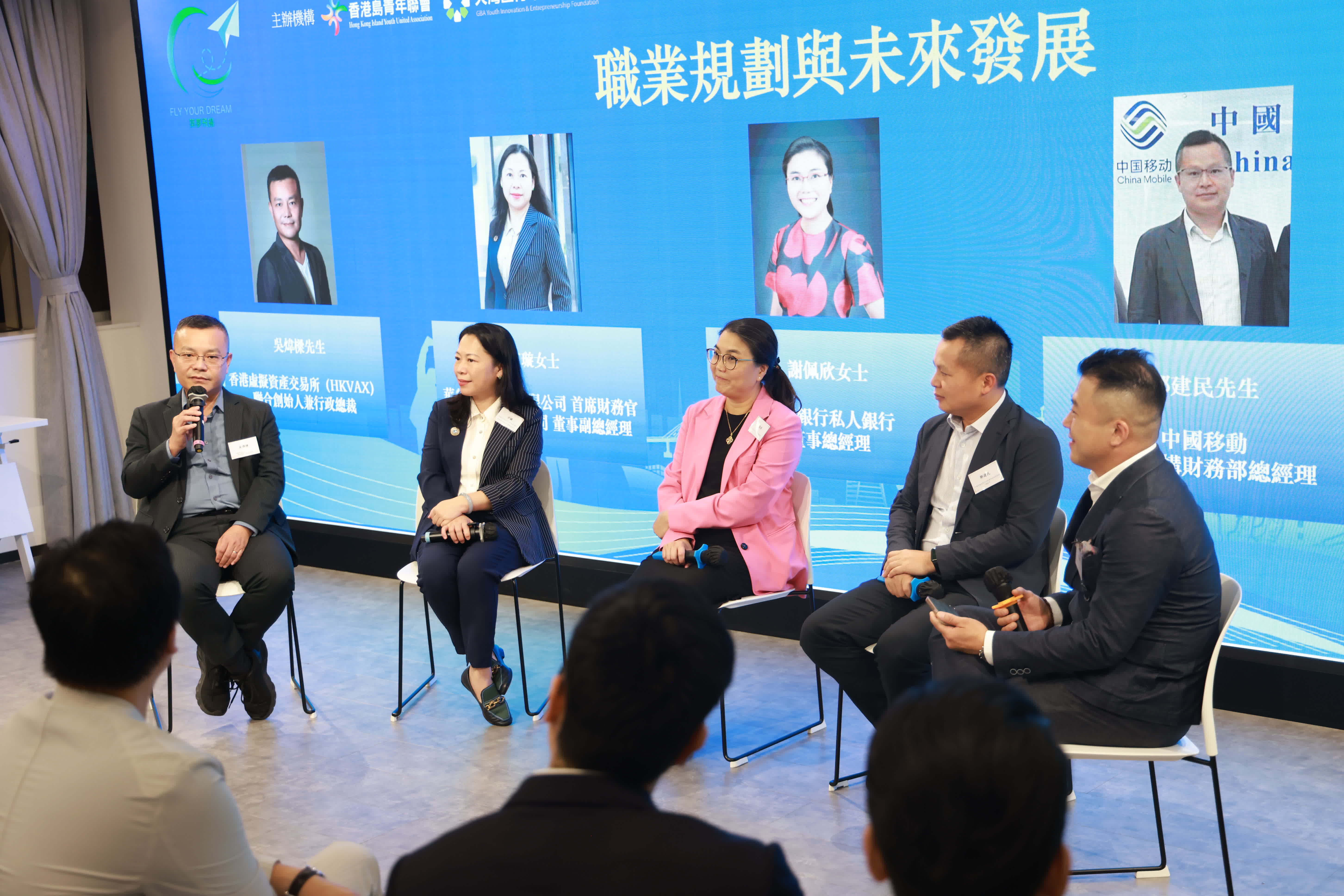 之後大會舉行了首屆「築夢飛揚」品牌系列下的「職場啟航」實習就業論壇,由華營建築方璇女士、花旗銀行謝佩欣女士、HKVAX吳煒樑先生及中國移動鄧建民先生擔任嘉賓,圍繞「職業規劃與未來發展」進行深入分享。嘉賓指出,在AI與自動化迅速發展的背景下,創造力、決策判斷、人際溝通與藝術體驗等能力具備不可替代性,青年應善用AI工具提升專業表現,並明確職業規劃,持續學習以應對變局。談及用人之道,嘉賓認為比起單純的學術知識,更看重主動學習、資源整合與解難能力,以及清晰的自我認知和長遠學習規劃。對於職場壓力,他們認為壓力既是挑戰也是成長的契機,運動、休息與交流皆有助釋放,積極心態尤為關鍵。隨後的論壇互動環節中,嘉賓與青年近距離交流,答疑指點,現場氣氛活躍,學子們均表示獲益良多。