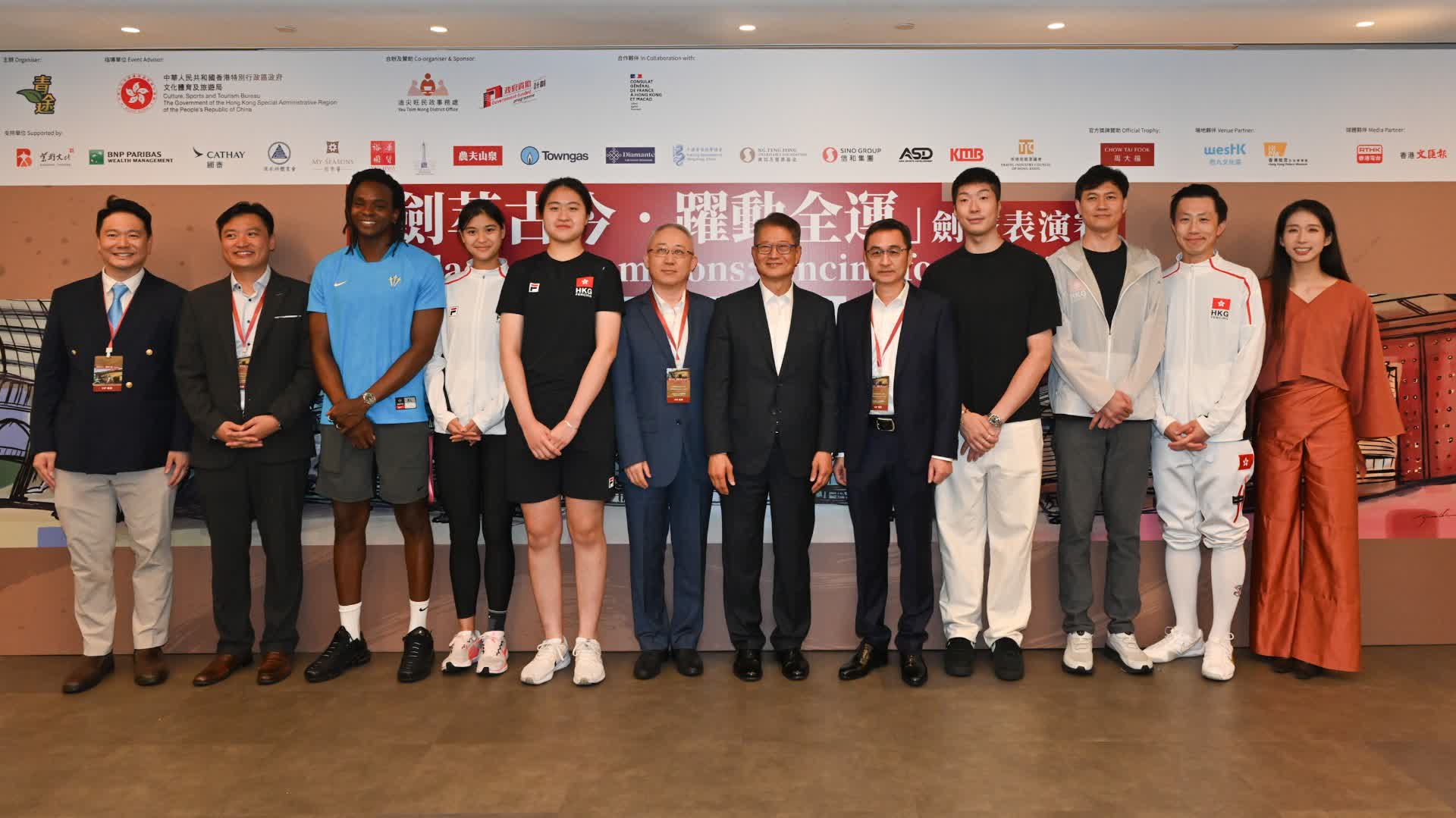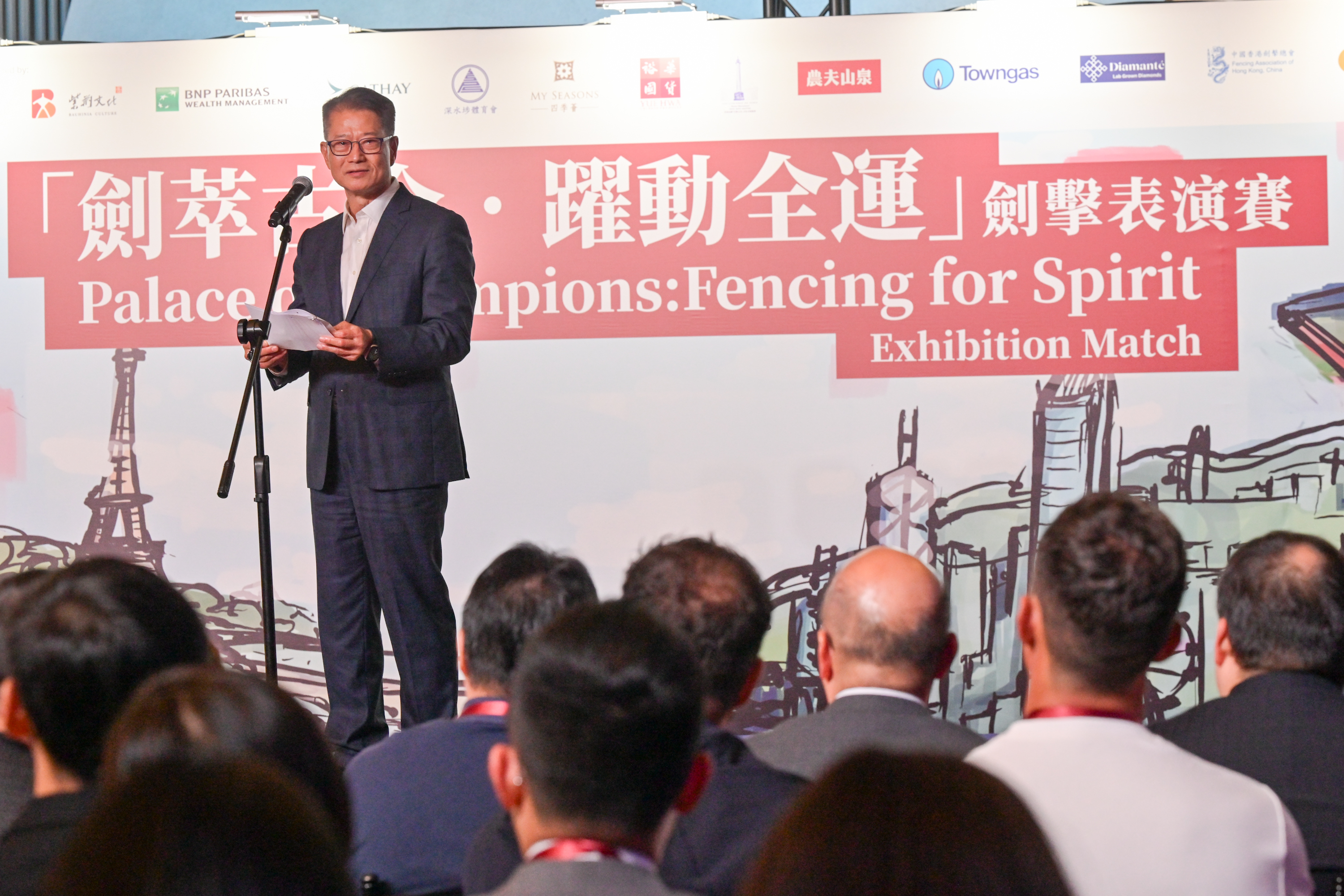 財政司司長陳茂波致辭時表示,在香港故宮文化博物館舉辦劍擊表演賽,象徵體育與文化的深度結合,不僅有助激發年輕人對劍擊運動的興趣,更向世界展示香港作為國際大都會的活力,及大灣區發展的無限可能性。