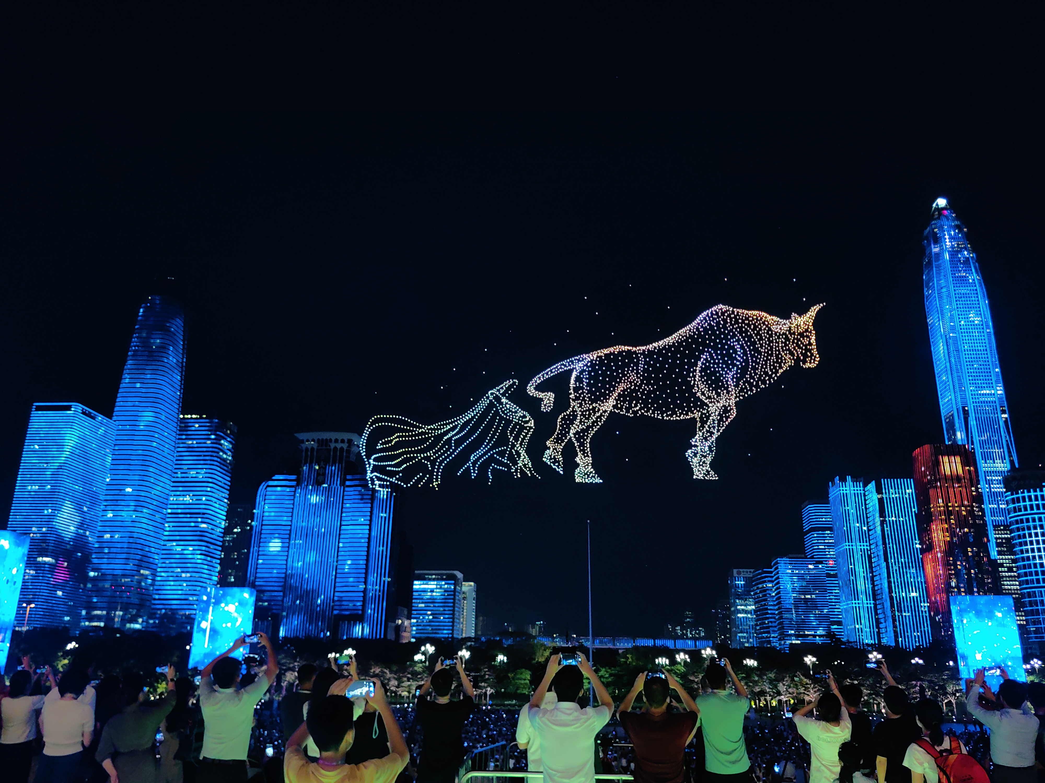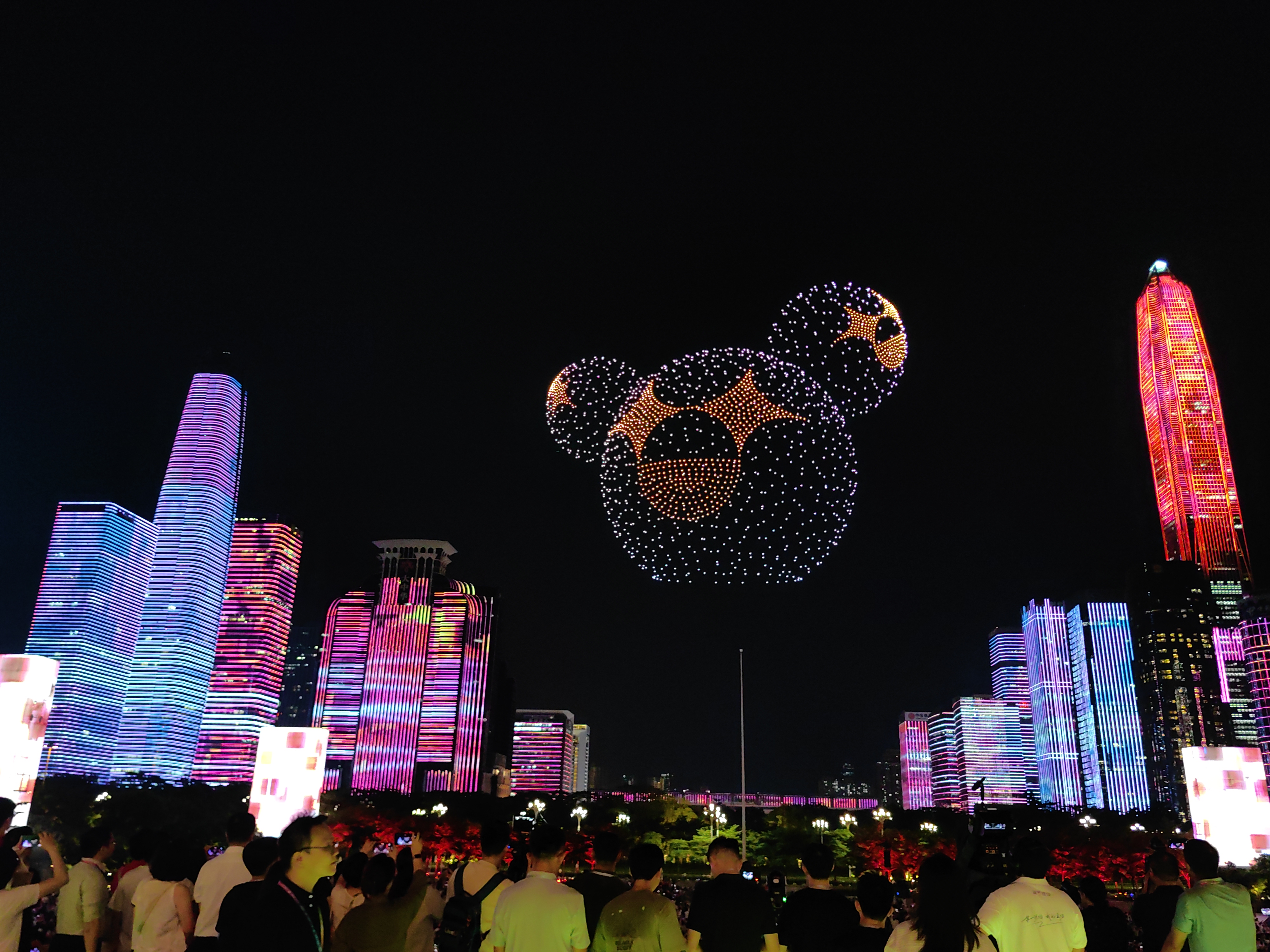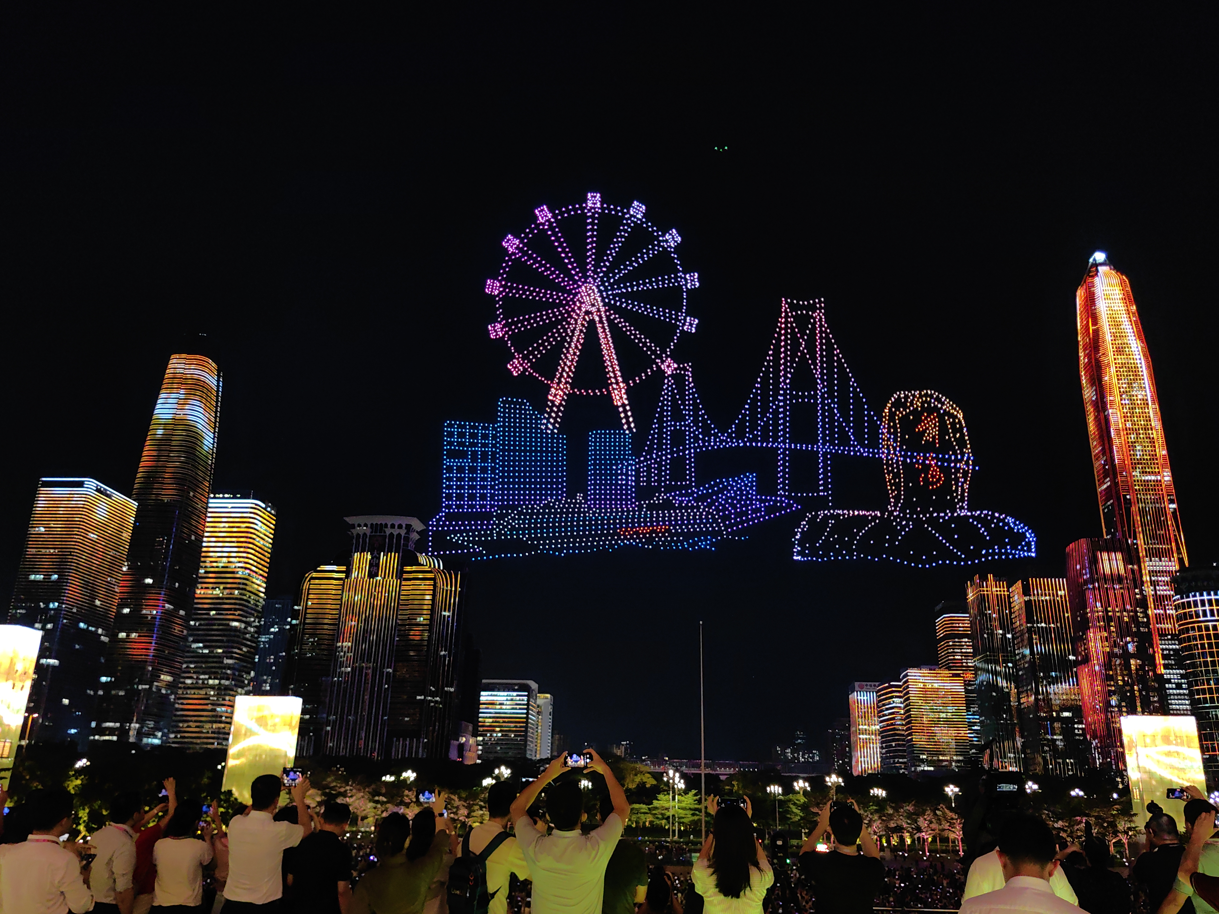 (大公文匯網 記者 郭若溪、胡永愛)8月26日晚上8時26分,深圳經濟特區建立45周年無人機燈光秀表演在深圳市民廣場、深圳人才公園雙主場同時舉行。1.2萬架無人機騰空而起,與城市燈光秀交相輝映,以天空為幕、以科技為筆,為市民遊客獻上了一場科技與藝術共舞的視覺盛宴,向世界生動講述了深圳經濟特區建立45年的發展奇跡。