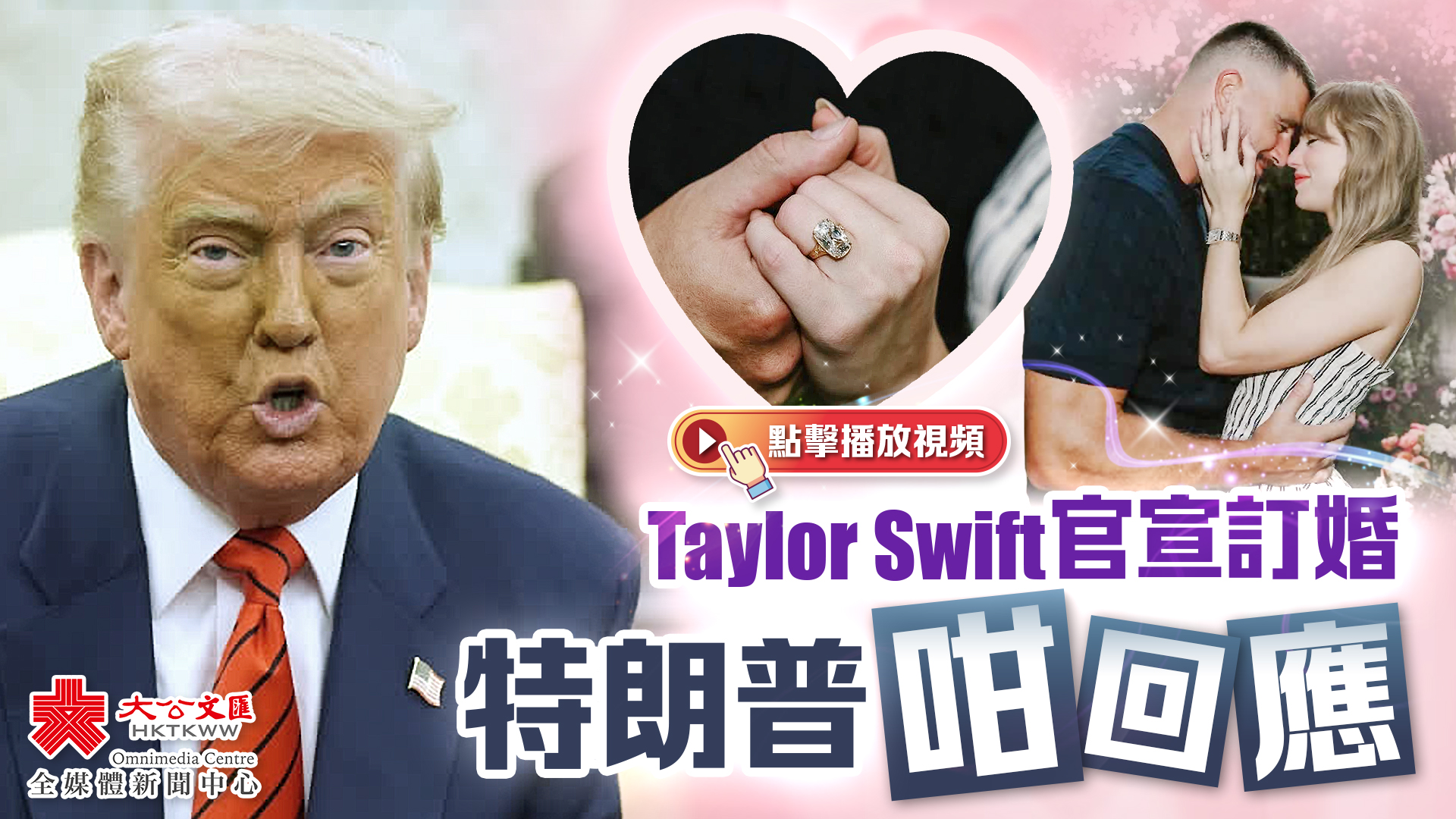 大公文匯全媒體報道,美國樂壇天后Taylor Swift與堪薩斯酋長球星男友Travis Kelce剛於網上官宣訂婚喜訊。與Taylor Swift一向不和的美國總統特朗普開腔,祝他們「好運」。