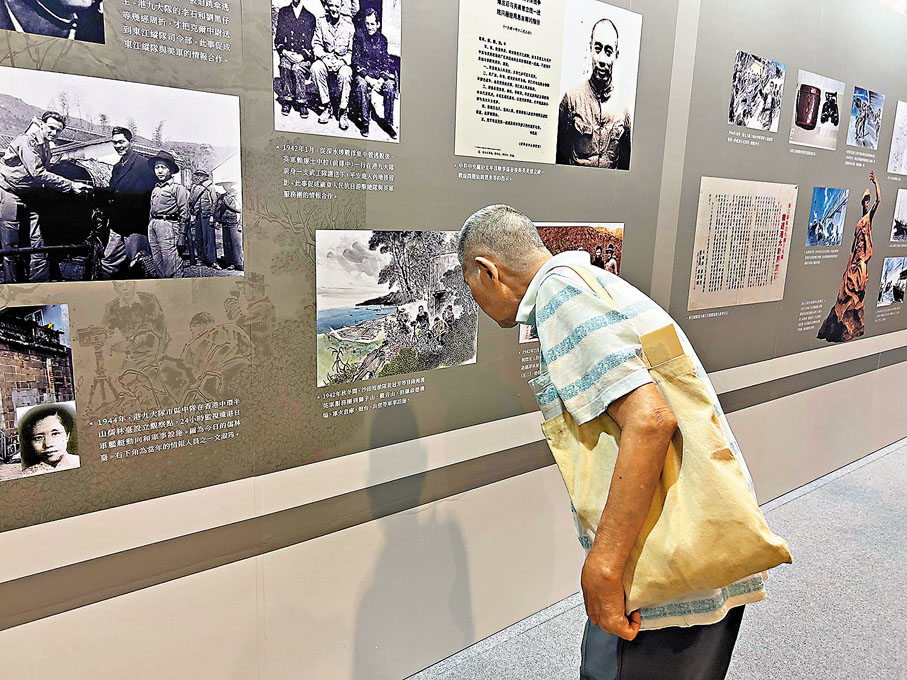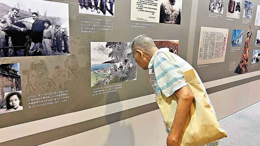 一位肩背環保袋,衣着簡樸,但又精神奕奕的老人日前在巡展第二展區仔細地觀看展板,默唸字字句句,又駐足觀看視頻,聆聽東江縱隊的老戰士講述當年抗戰經歷。記者離遠一直觀察這位長者,他停留在展板前的時間,比同場的其他人都要長。