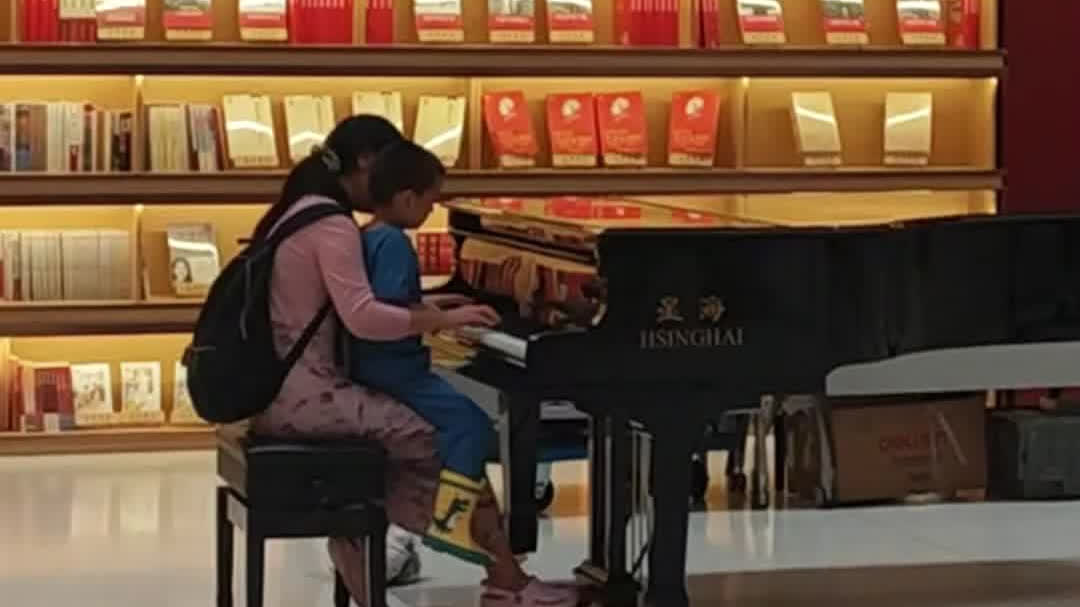 循聲而去,只見一位母親正攜五歲的孩子彈奏《義勇軍進行曲》《一條大河》等振奮人心的經典曲目。琴聲回蕩在紀念館中,吸引不少參觀者駐足聆聽。演奏結束時,母親眼角泛着淚光,動情地說道:「參觀結束後心情有一些壓抑,也感受到我們今天的幸福來之不易。」