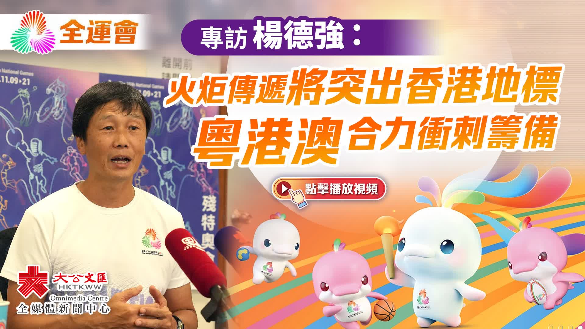 火炬傳遞亦是全運會焦點之一,楊德強指,香港已擬定初步方案,具體日期、路線及人選,則需與廣東和澳門進一步協調。楊德強透露,香港的方案會突出本地特色,同時結合文化和體育元素,希望透過火炬傳遞展示香港地標、旅遊及文化景點,「令大家一見到個地方,就好想嚟香港睇比賽」。火炬手人選亦尚未最終確定,楊德強表示,火炬手將以體育界人士為主,另納入社會其他界別代表,具體人選將在三地協商後公布。