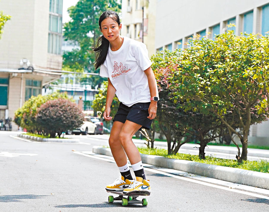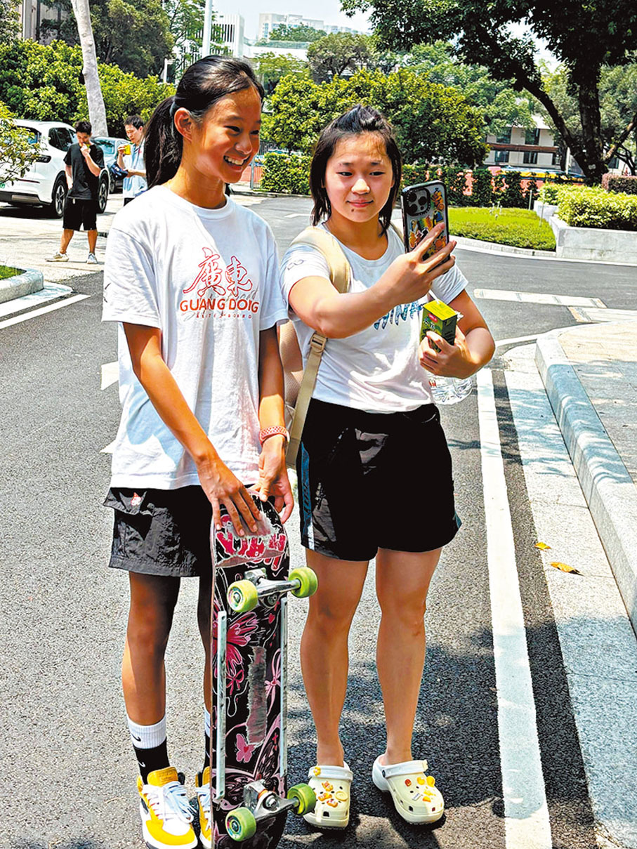 (圖/文:香港文匯報記者 張發兒 廣州直擊)去年的巴黎奧運,一名小女孩在協和廣場城市公園滑板場滑行,做出各種花式動作——她是年僅11歲的鄭好好,也是當屆奧運最年輕的運動員。現年13歲的鄭好好將於11月的全運會亮相,再度於賽場上起跳、抓板、落地。剛過了生日的她笑言願望就是奪得全運會冠軍,並已經開始練習「大招」,準備於賽場上施展。經歷過奧運洗禮後,不失童真的鄭好好將以更成熟的心態衝擊全運會金牌。