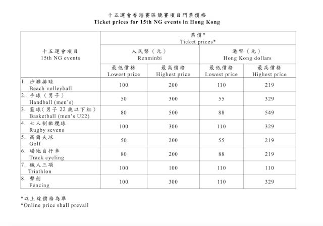 據介紹,首批次賽事門票涉及十五運會香港賽區四個競賽項目:沙灘排球、男子手球、男子22歲以下組籃球和七人制橄欖球。另外,13個在廣東賽區舉行的比賽項目門票也將在香港發售。公眾可通過官方線上票務平台,以實名註冊登記開戶,購買電子票。