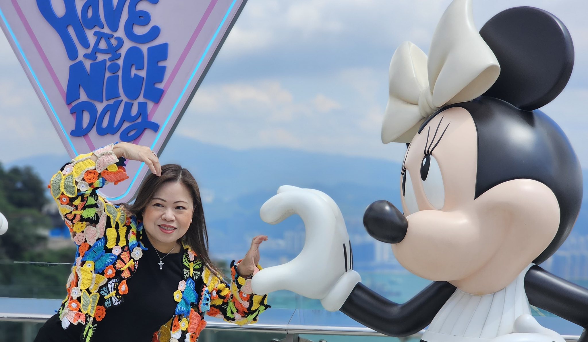 大公文匯全媒體報道,全港首個迪士尼「Mickey Keep It Real」主題活動今個暑假登陸香港,聯同一眾好友米妮、唐老鴨、高飛等現身山頂纜車及凌霄閣,同場更有大熊貓「六寶」公仔。文化體育及旅遊局局長羅淑佩今日(28日)於社交平台發文,指自己一直想和大熊貓「六寶」和米奇、美妮等迪士尼朋友打卡,昨日終於得以實現。
