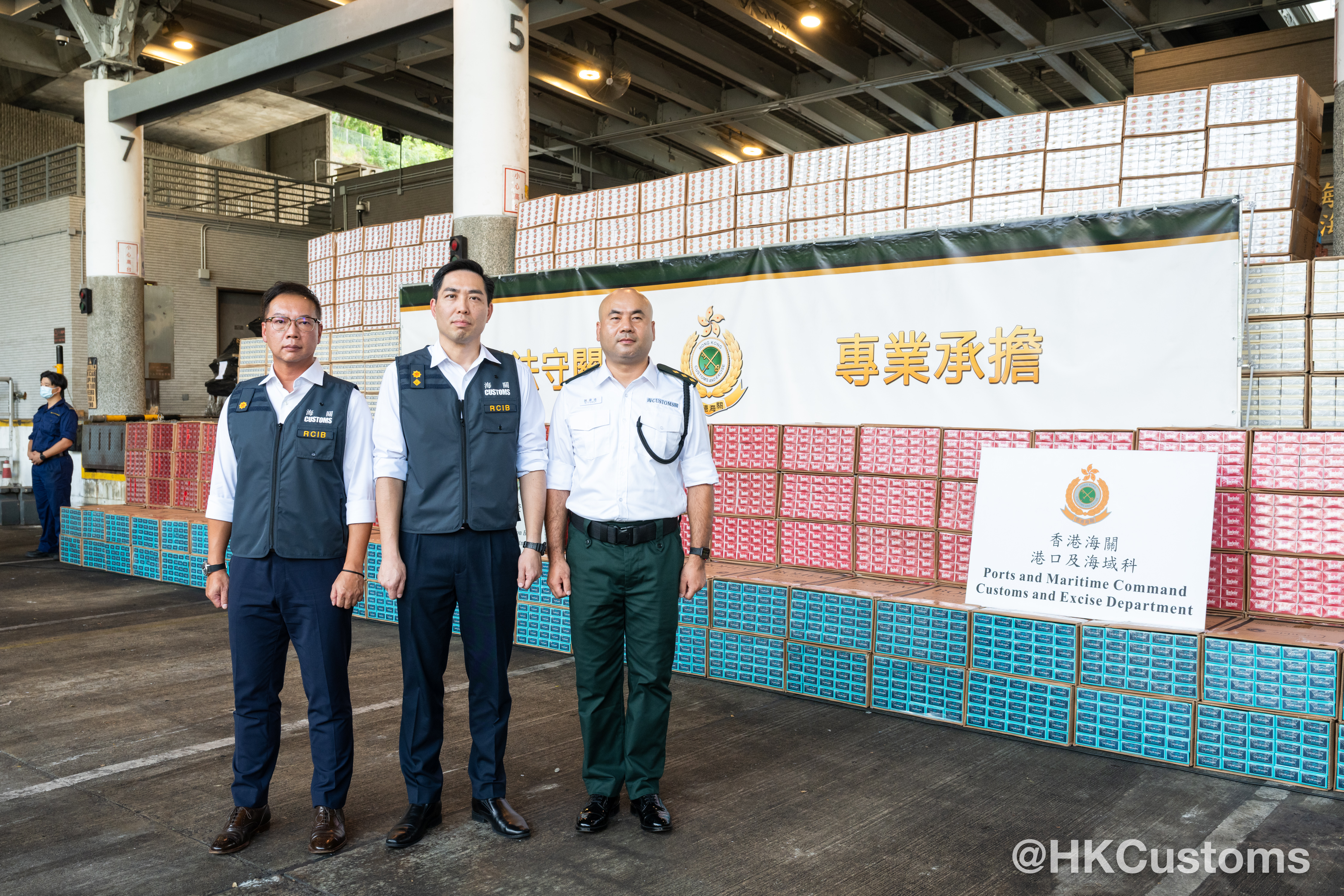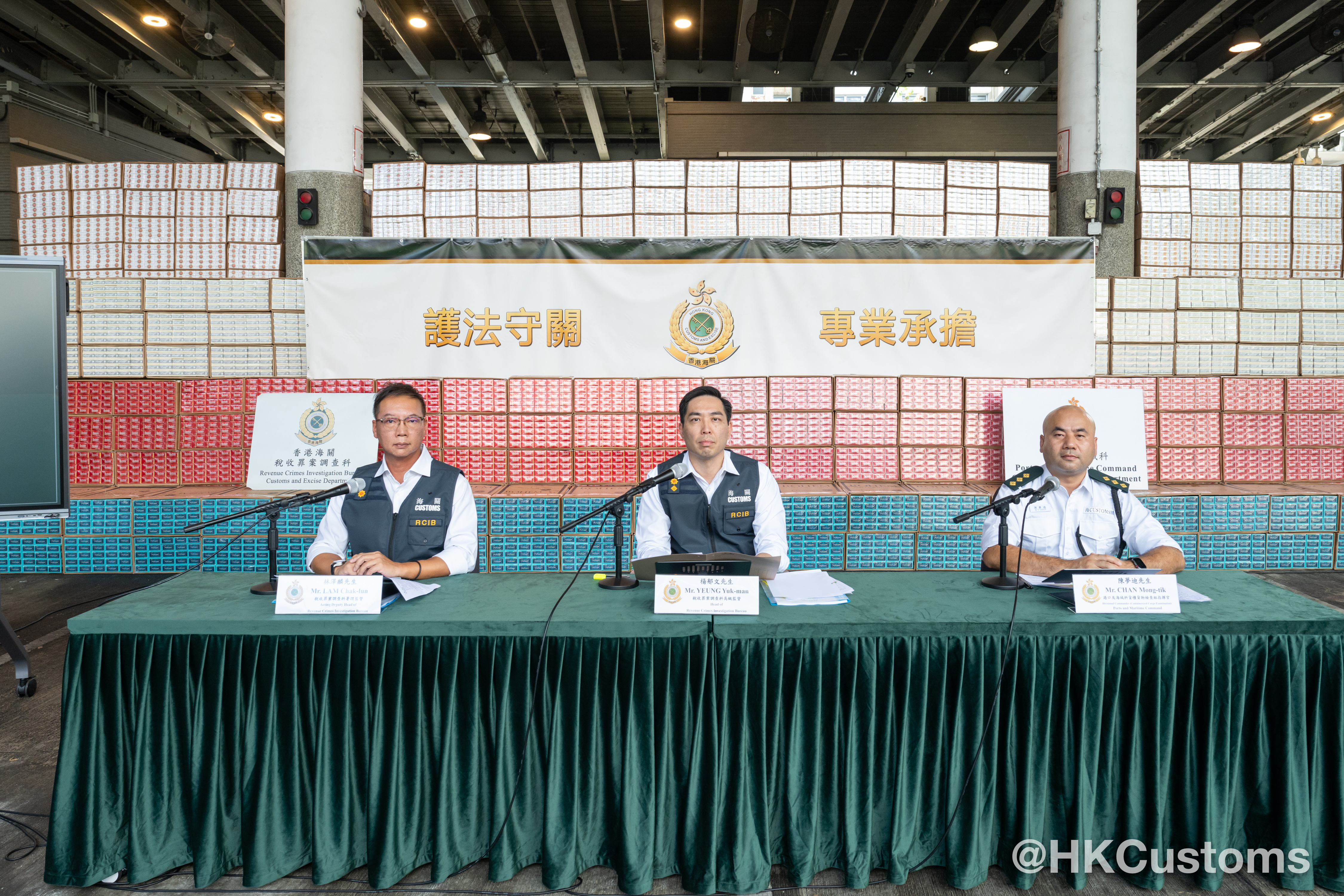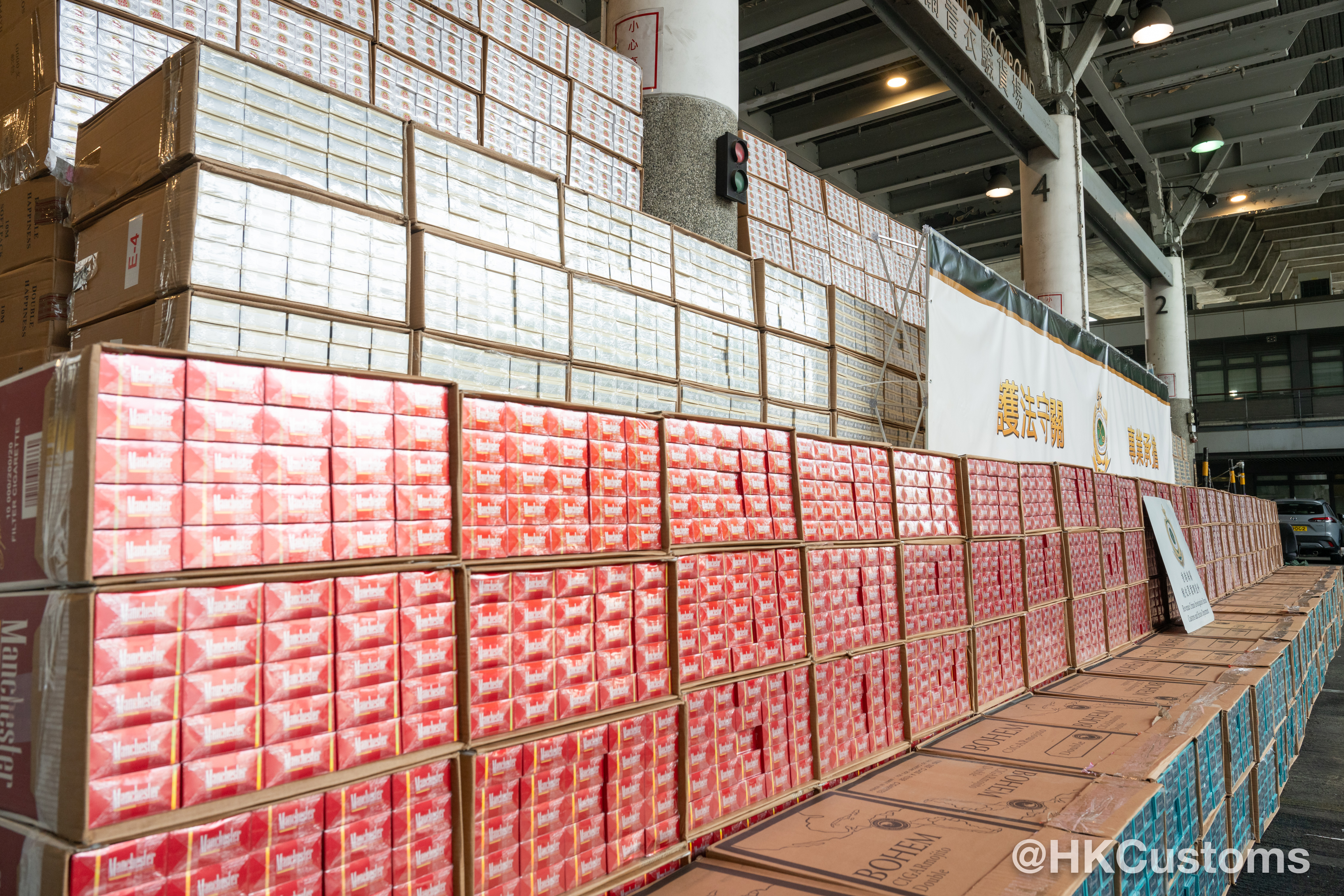 香港海關一直致力促進亞太區內海關合作,從源頭打擊跨境走私香煙,並接連破獲不同類型的跨境走私香煙案件,成效顯著。今年上半年,香港海關共偵破八十四宗大型走私香煙入口案件,檢獲約二億七千八百萬支私煙 ,估計市值約港幣十二億五千萬元,應課稅值約港幣九億二千萬元。