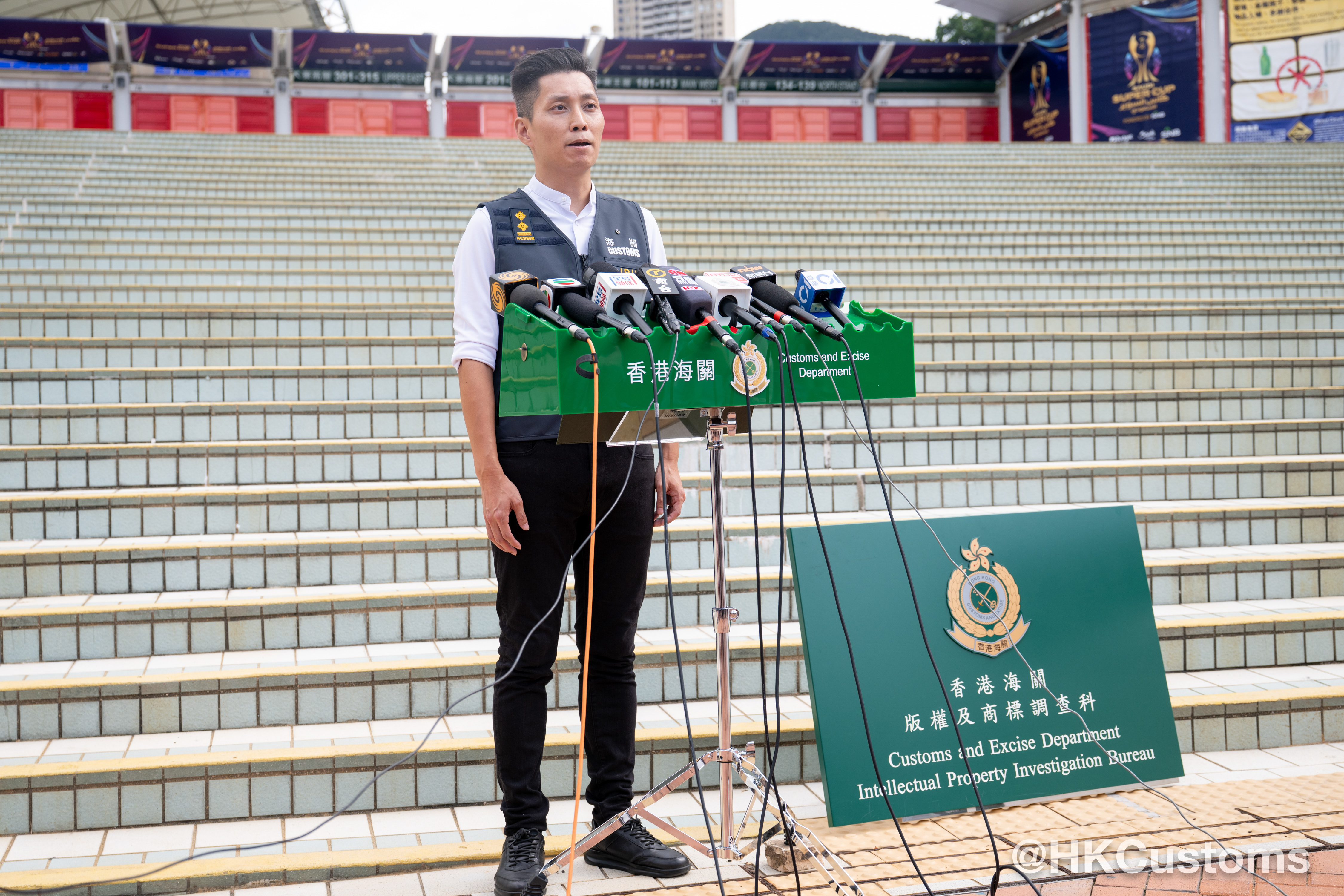 香港海關於七月二十六日及三十一日、八月十九日、二十日及二十三日在大型國際體育盛事期間採取特別執法行動,打擊流動小販售賣冒牌物品,共檢獲超過一千二百件懷疑冒牌物品,估計市值約港幣二十一萬元。