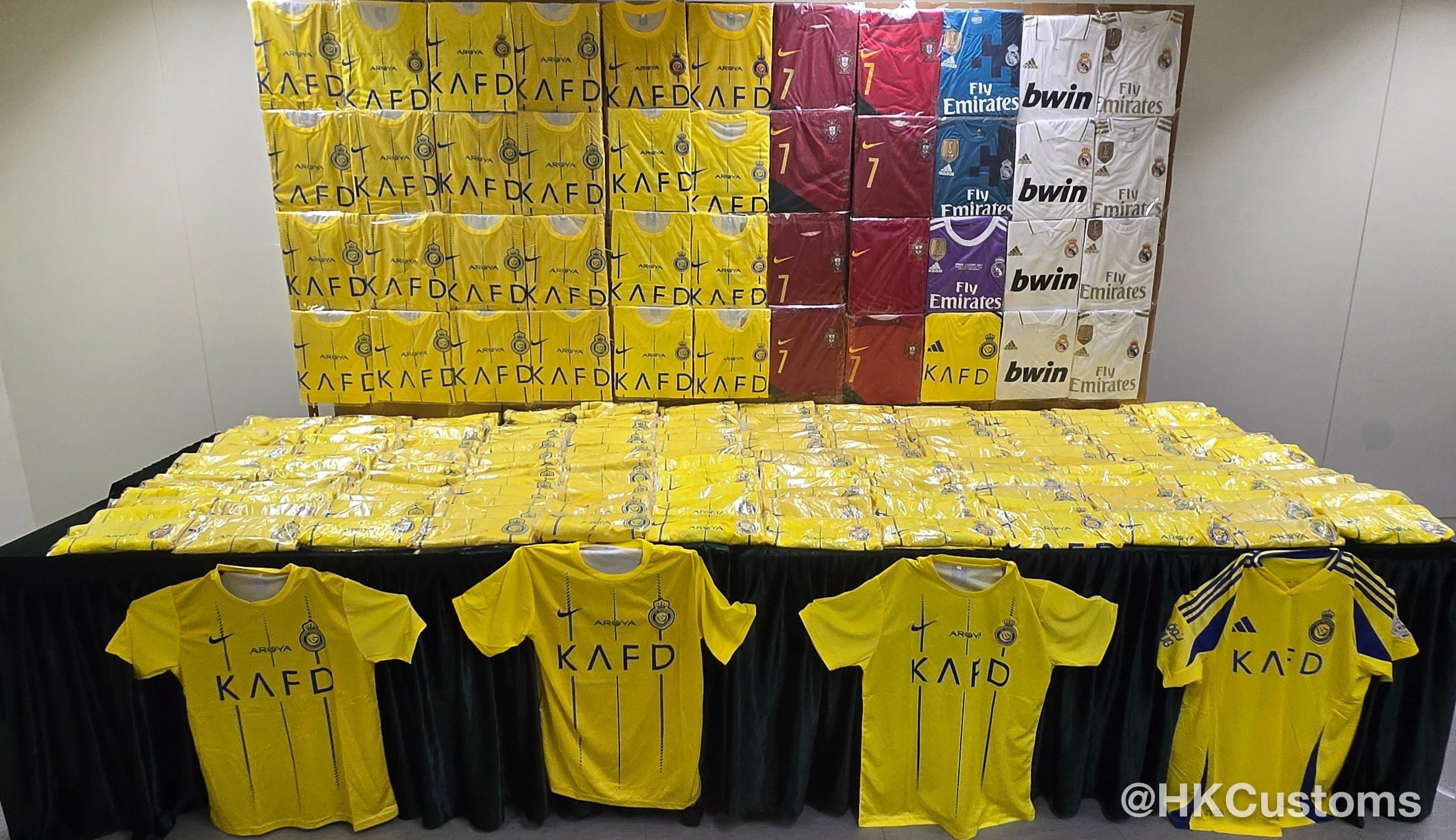 香港海關在香港足球盛會2025及沙特超級盃中國香港站舉行期間加強打擊售賣冒牌物品活動,在啟德體育園及香港大球場附近掃蕩多個售賣懷疑冒牌物品的流動小販,並檢獲超過一千二百件懷疑冒牌物品,當中包括球衣及短褲。行動中,香港海關共拘捕一男五女,年齡介乎三十至五十三歲。