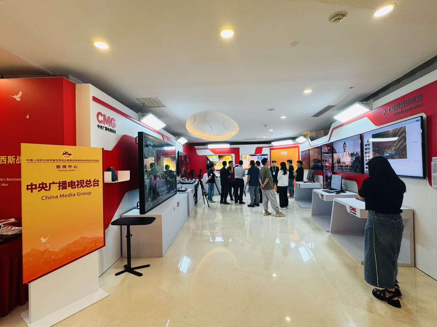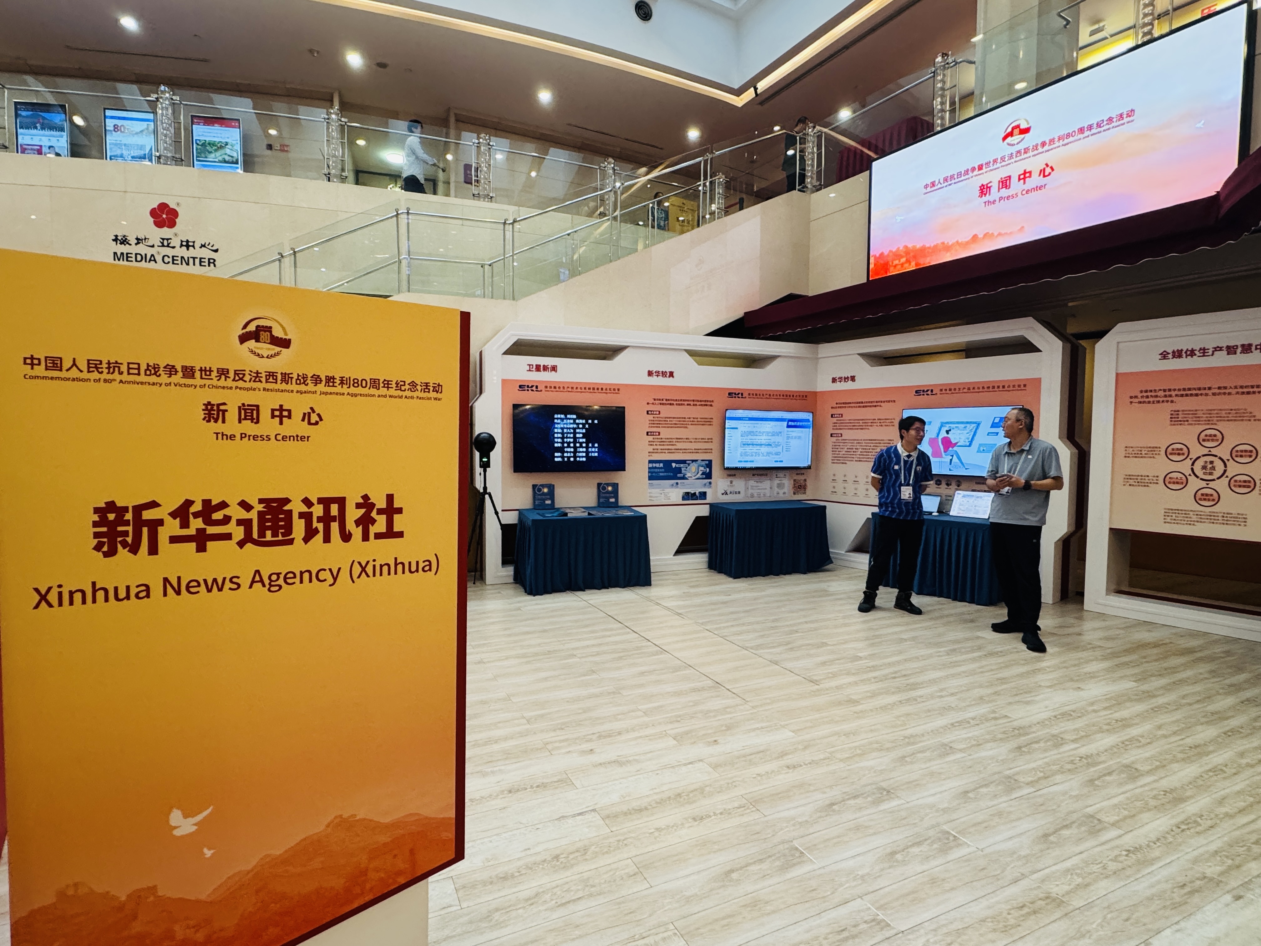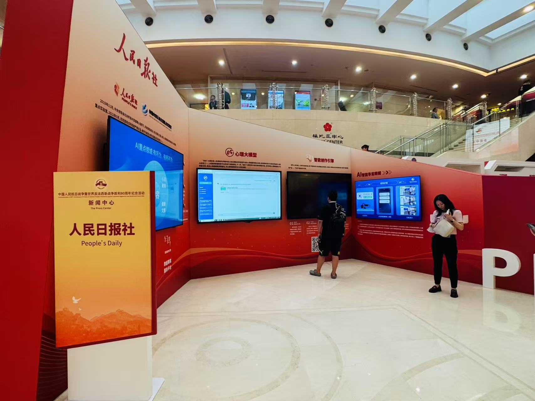 (大公文匯網 記者 羅洪嘯、凱雷 北京報道)中國人民抗日戰爭暨世界反法西斯戰爭勝利80周年紀念活動新聞中心27日對外接待中外記者,記者第一時間探訪,被新聞中心的各種AI技術所吸引。不僅在記者茶歇區的每個桌子上擺放了AIGC賬號註冊的二維碼,在媒體展示區,《人民日報》、新華社和中央廣播電視總台更是拿出了看家的人工智能黑科技,組團向中外記者展示。