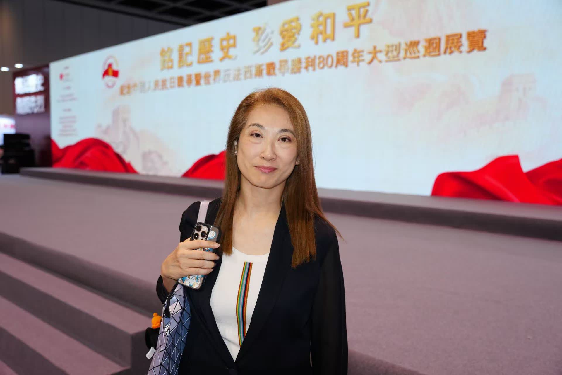 圈傳媒總社長張瑞蓮表示,在展覽內看到全國人民在日軍侵華時期拋頭顱灑熱血、保家衛國不畏犧牲的事跡,非常感動,那段歷史見證了中國人民不屈不撓、團結一致、抵禦外敵的精神。她表示,作為曾經在港英政府統治下生活的香港人,過去的教育甚少涉及中國近代史和日本侵華史的內容,「這個展覽幫助我去認識到更多香港歷史和國家歷史。」