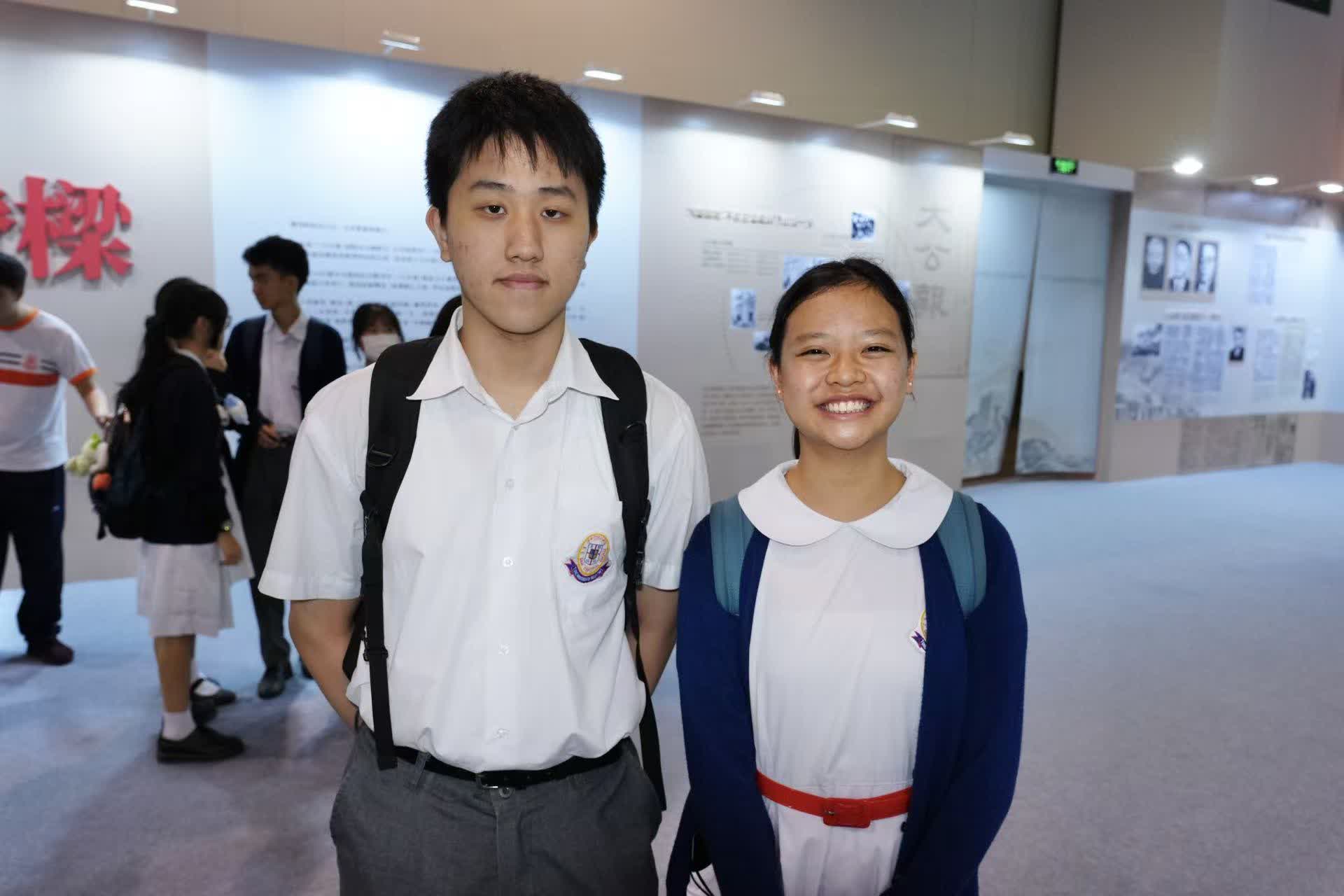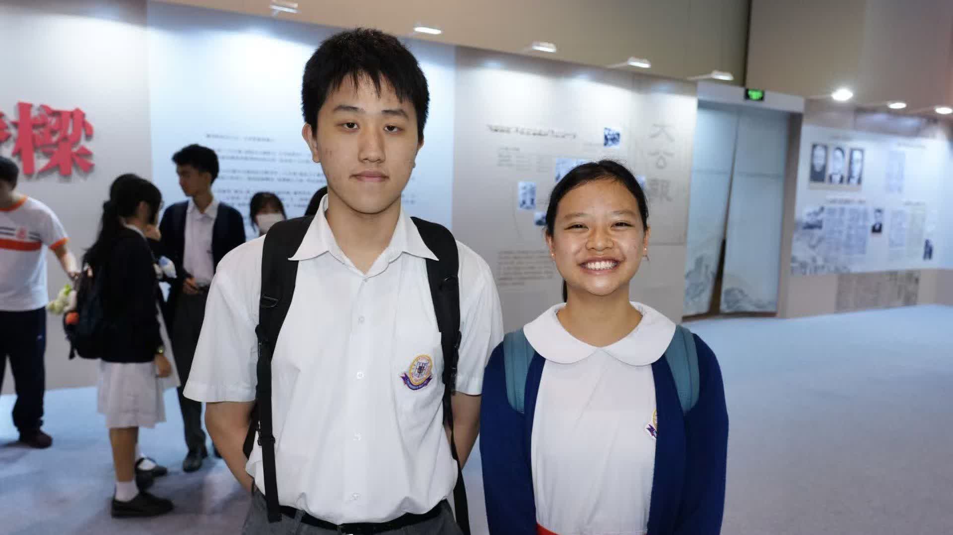 東華三院吳祥川紀念中學的梁雅稀同學和何書平同學都有修讀中國歷史。梁雅稀表示展會上有不少平時書中看不到的內容,例如漫畫家將戰爭的殘酷畫面畫出來,令她印象深刻。她又說,看到八位女烈士為了國家犧牲自己的生命,感到很震撼,希望未來可以通過做義工和慈善募捐等形式幫助國家和香港社會。何書平則指,看到不少先烈為國捐軀,所以更應該銘記歷史,珍惜現在的和平時光。