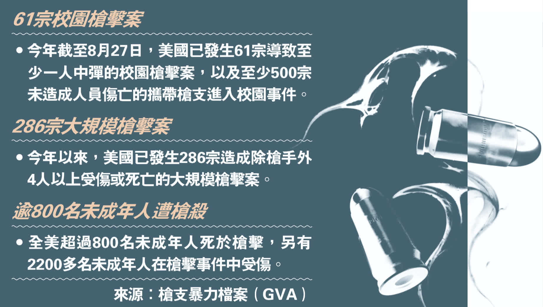 據槍支暴力檔案(GVA)統計,美國今年已發生61宗導致至少一人中彈的校園槍擊案。