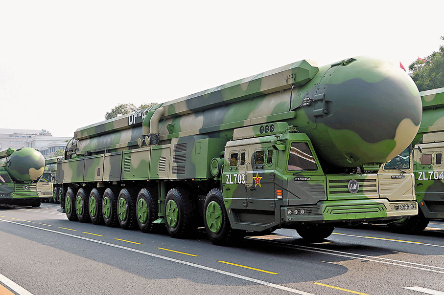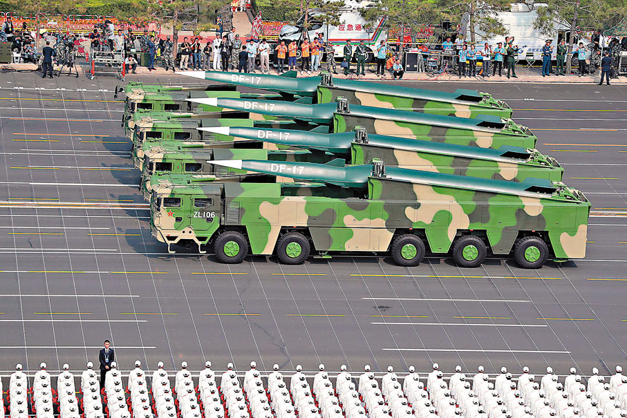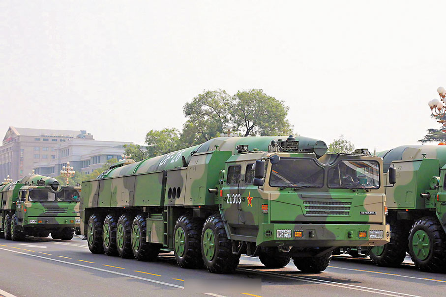 當天閱兵式上, 總長超過20米的「大胖墩」東風-41洲際戰略核導彈方隊壓軸出場,「國之重器」在世人面前首次揭開神秘面紗。作為中國自主研製的新一代戰略核導彈,央視在解說詞說:「戰略制衡、戰略懾控、戰略決勝,東風-41洲際戰略核導彈,是我國戰略核力量的中流砥柱!」中國導彈技術專家楊承軍認為,東風-41代言了中國整個國防體系躍升的能力,是當之無愧的大國重器。