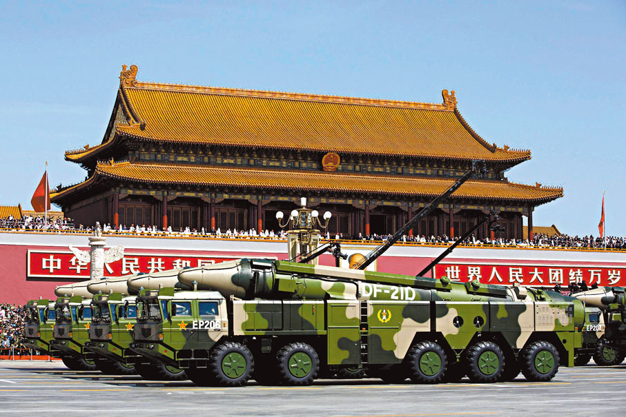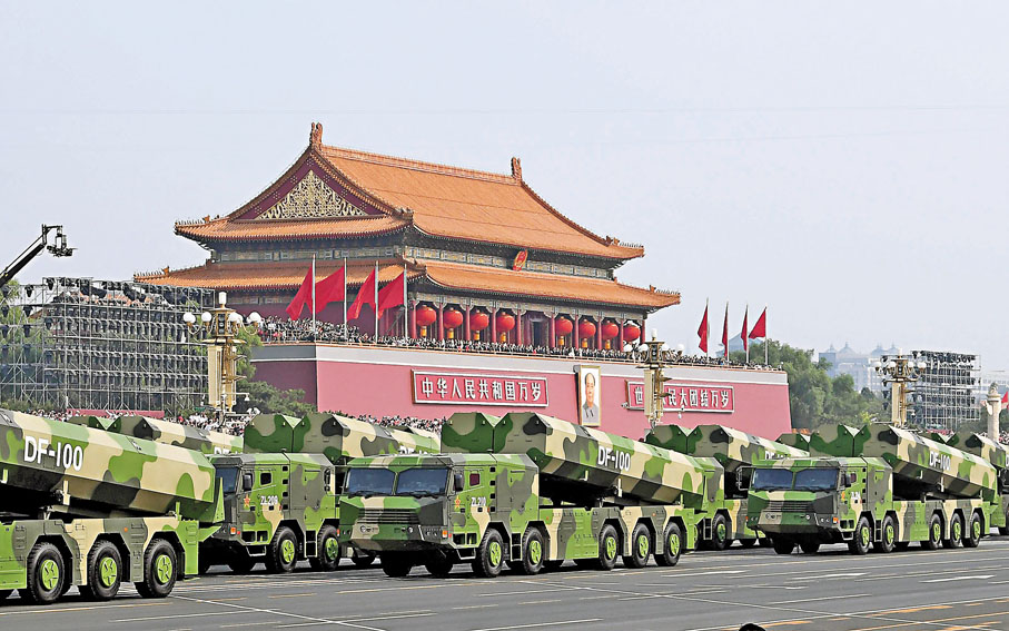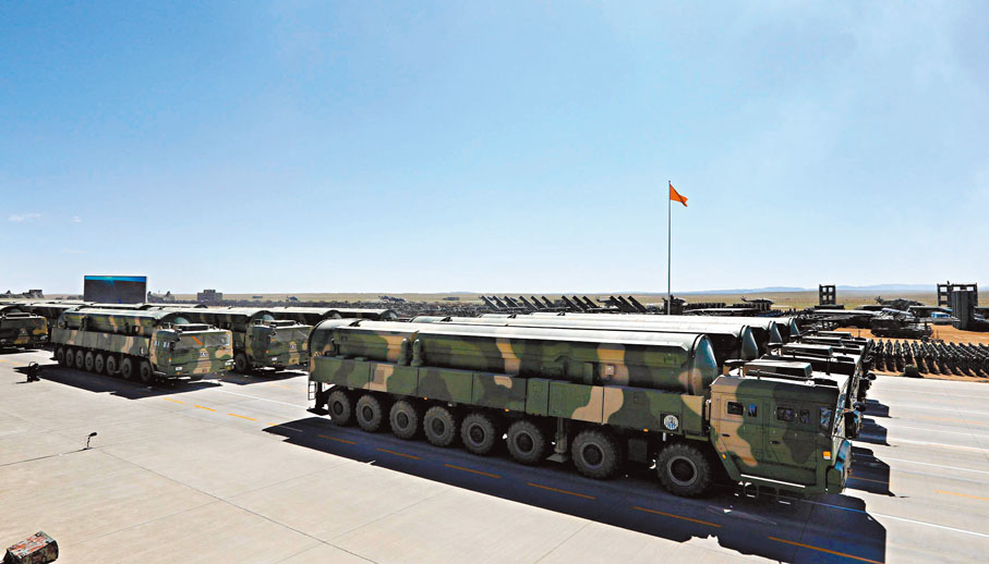 受閱導彈武器裝備,涵蓋了遠中近、核常新等不同梯次的導彈武器,東風-31A和東風-5B等新型洲際彈道導彈亮相,其中「明星」首推東風-5B洲際彈道導彈,當時閱兵解說詞指出,這是可以攜載分導式多彈頭的洲際彈道導彈。新一代東風-16中近程彈道導彈、東風-26中遠程彈道導彈和東風-21D中程彈道導彈同時公開亮相,不僅大大延伸了陸基精確打擊的射程範圍,而且形成打擊大型海上移動目標的作戰能力,表明中國在彈道導彈技術創新發展上走在了世界前列並形成特色。