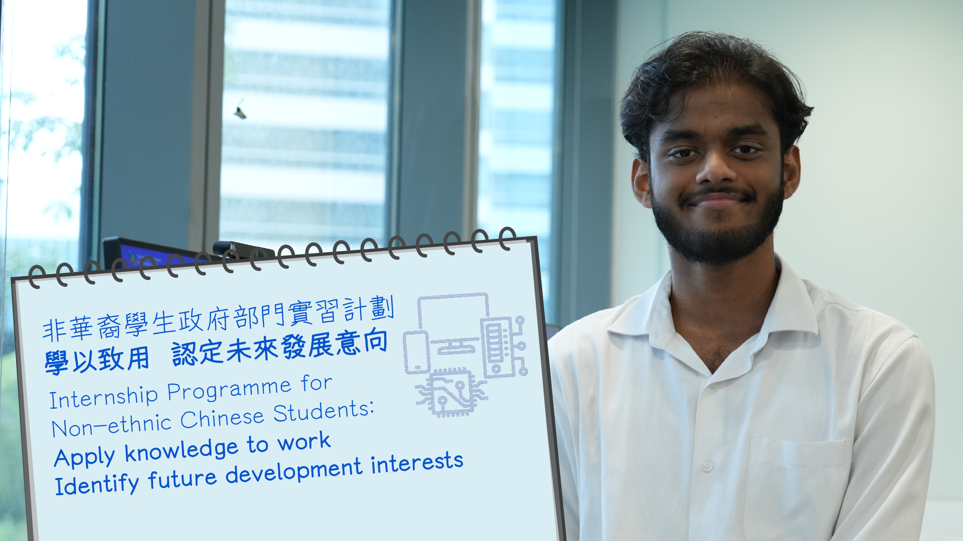 今年的實習生之一Sheik Mahmood Afif (Afif) 獲派到數字政策辦公室,協助智能政府創新實驗室的日常運作,包括編寫電腦程式來分析已收集的人工智能方案。正在大學修讀計算器工程的Afif認爲,實習工作範疇與他就讀學科息息相關,除了令他能學以致用外,也加強他在科技相關行業發展的意向,他非常推薦其他非華裔學生參加這個實習計劃。