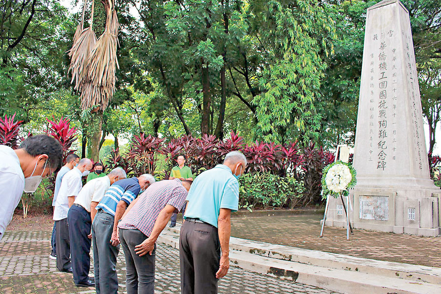 位於馬來西亞吉隆坡廣東義山克拉容路的雪蘭莪華僑機工回國抗戰殉難紀念碑,是馬來西亞首座南僑機工紀念碑。1939年起,在陳嘉庚先生號召下,3,000餘位南僑機工返回中國效力,在滇緬公路上搶運抗戰軍需,保障了「抗戰生命線」的暢通,他們中很多人付出了生命。這座紀念碑於1947年由當地華社集資建造,今年8月,馬來西亞吉隆坡南僑機工紀念公園、南僑機工紀念館落成,紀念公園以紀念碑為核心,紀念碑周圍以夯土打造出環形紀念牆,象徵滇緬公路的「二十四道拐」,牆上還鐫刻着約三千多名南僑機工的名字。