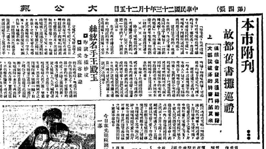 1934年10月25日、26日,孫犁的《故都舊書攤巡禮》分兩次刊發於《大公報》第13版。此文見報時漏掉署名。27日,《大公報》特意刊登《本刊小啟》,說明《故都舊書攤巡禮》為孫芸夫君所作,因編輯疏忽,漏登署名,特為補志。