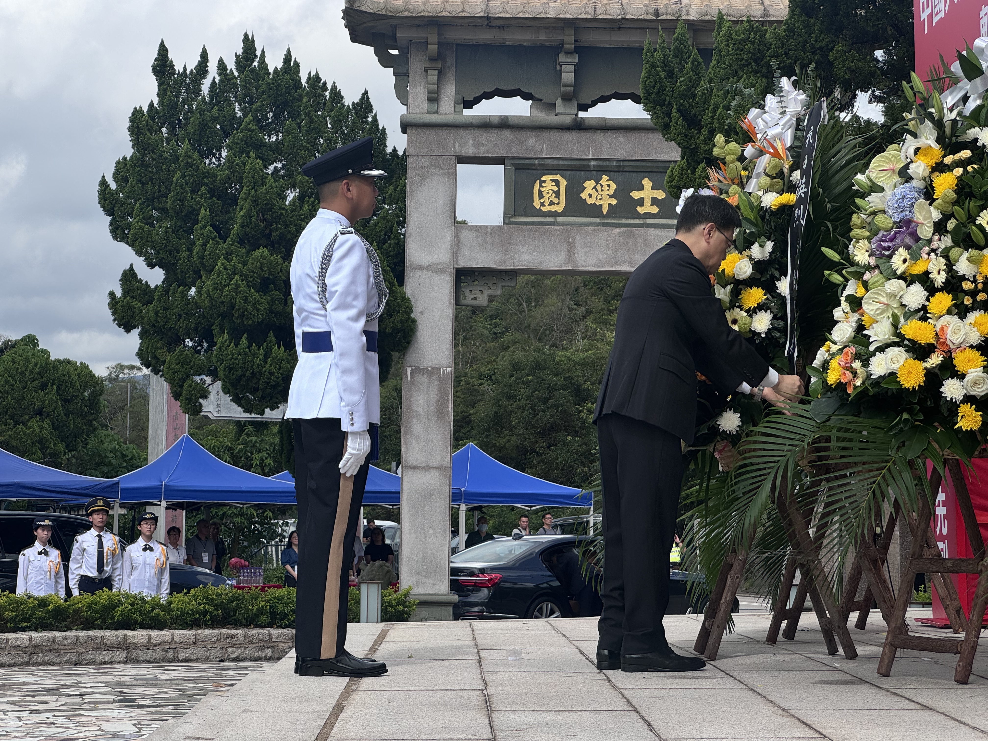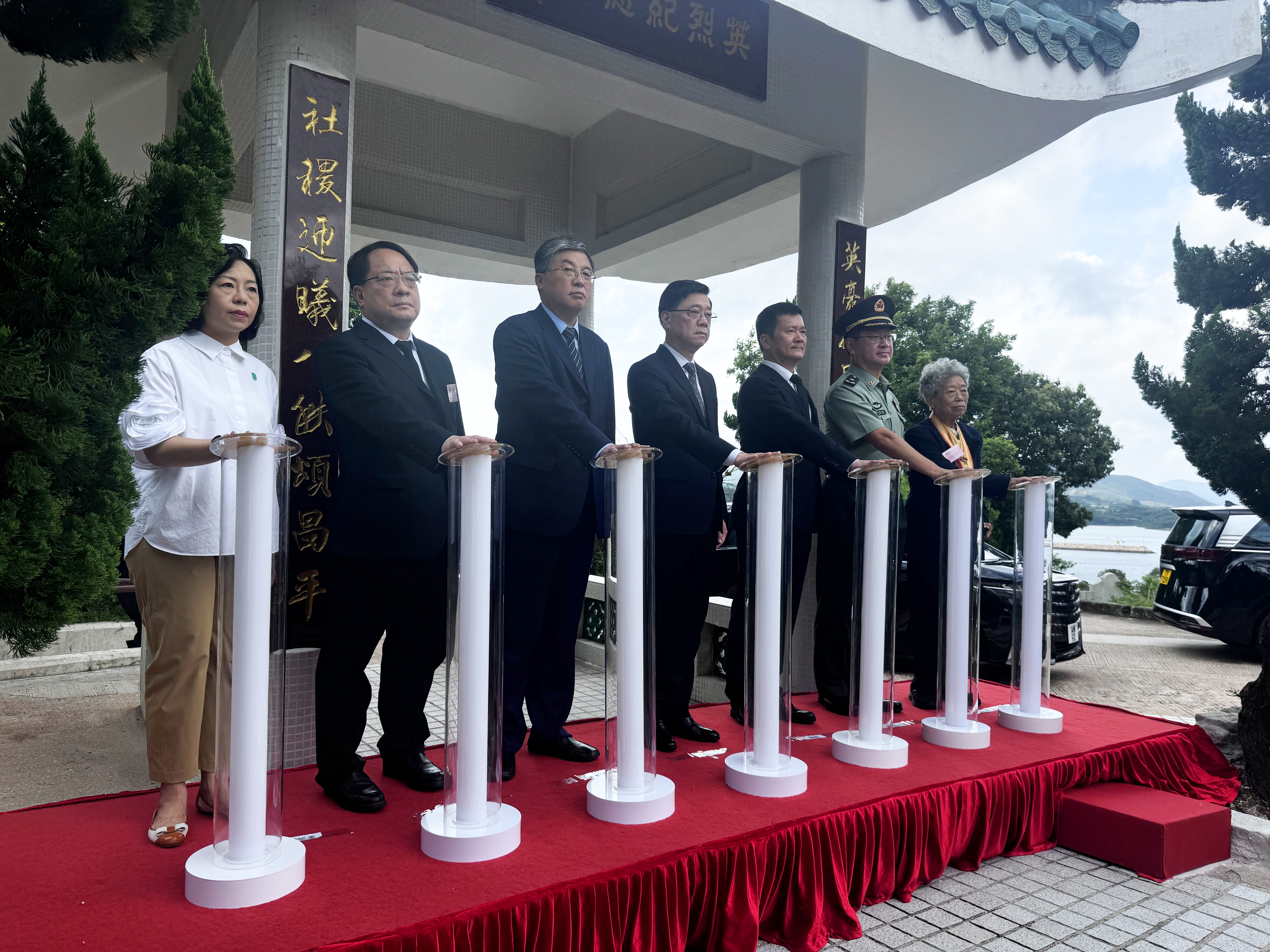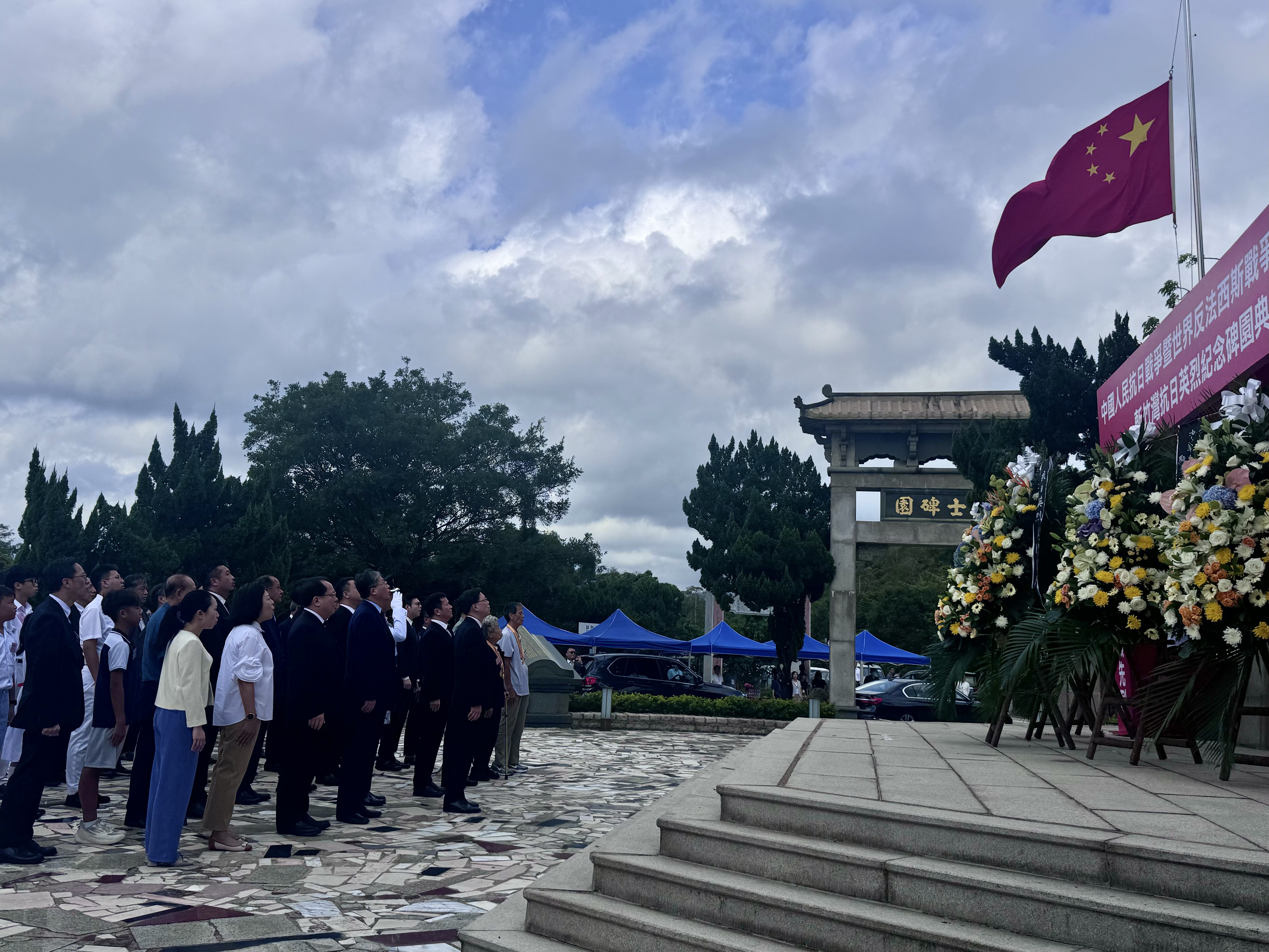 (大公文匯全媒體記者 梁譯尹)中國人民抗日戰爭暨世界反法西斯戰爭勝利80周年斬竹灣抗日英烈紀念碑園典禮今日(30日)在西貢斬竹灣大網仔路舉行,行政長官李家超和民政及青年事務局局長麥美娟等嘉賓出席,緬懷抗戰英烈。