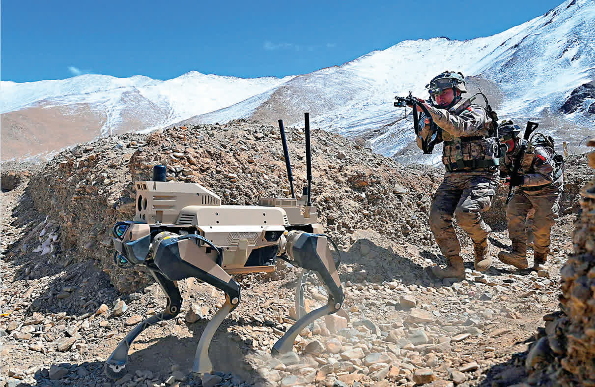 2018年珠海航展上,可用於戰場偵察和運輸彈藥物資的小型軍用四足機器人首次亮相。而在2023年的央視軍事欄目中,西部戰區部隊裝備的兩隻機器狗,已經可以在操作員控制下,對既定目標瞄準並開火。從抵近偵察到火力協同,近年來,國產機器狗已儼然成為陸軍作戰部隊的萬用平台。