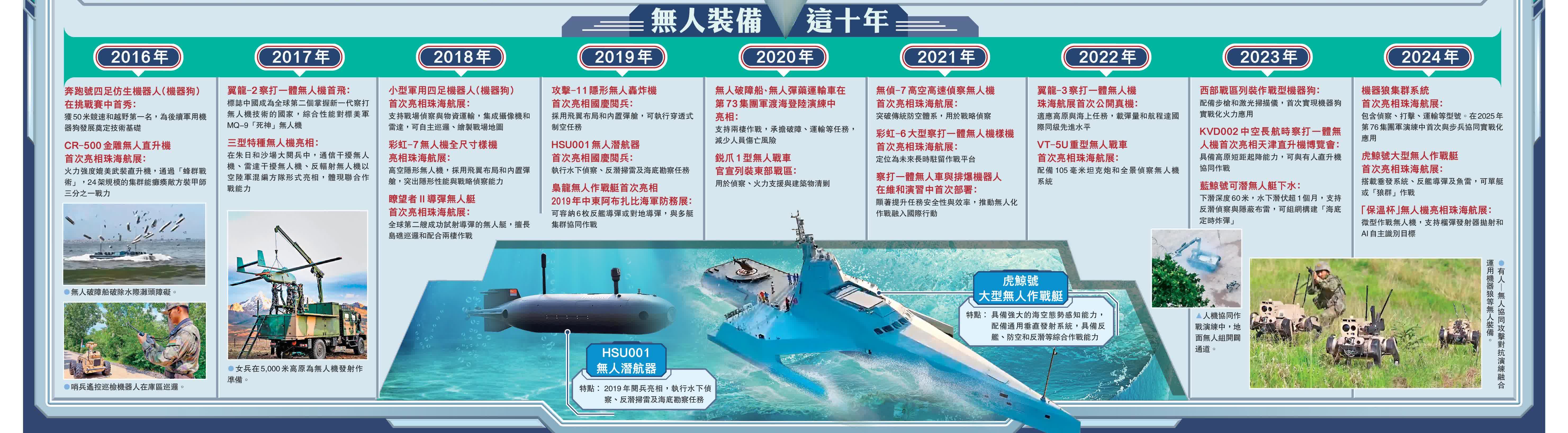 登陸作戰中,無人破障船衝鋒清除灘頭水雷;城市巷戰中,「保溫杯」無人機顛覆單兵作戰模式;正面戰場上,無人彈藥車穿越火線補給;高原演練中,無人機蜂群向海拔4,500米哨所投送熱食……十年間,隨着對無人作戰力量戰略價值的深度挖掘、智能化技術的持續突破,以及聯合作戰需求的迭代升級,解放軍無人作戰編組方式,正經歷着從強基拓維到深度耦合、從體系重構到自主作戰的階段性跨越。
