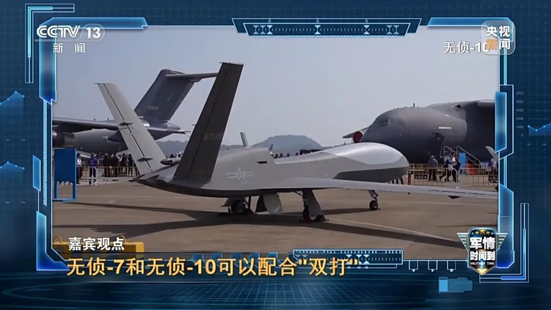 總台新聞評論員魏東旭:共同執行任務,我認為它們是有角色分工的,比如說其中的一架無人機可能主要是使用合成孔徑雷達,包括其他的傳感器進行廣域偵察。也就是在很廣闊的任務區域內,針對目標進行大概的測向和定位。如果想要針對目標進行打擊,還要知道它的具體位置以及它的運動情況,包括目標的屬性。這個時候另外一架無人機可能就要對它進行精準識別,把目標的圖片或者是視頻圖像及時回傳,這樣就可以知它具體在什麼樣的位置,運動狀態是怎樣的,這個目標的屬性是什麼。根據這個情況進行判斷之後,指揮人員馬上就可以制定有針對性的戰術戰法,針對目標進行及時有效而精準的火力打擊。
