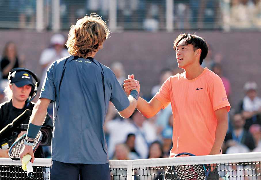 (香港文匯報記者 葉詩敏、文禮願)黃澤林(Coleman)在今屆美國網球公開賽屢創香港網球歷史,連夜牽動港人的心跳和情緒。他周日凌晨在逾8,000座位的第三大球場Grandstand亮相,與世界排名第十五的盧比利夫(Andrey Rublev)爭入16強,其間這名世界排名173位的港將多次力壓對手,一度獲對手舉起拇指認可。雙方激鬥5盤至決勝盤,黃澤林以2:3告負,結束今次美網神奇之旅。黃澤林首次殺入美網32強止步,已締造歷史,並以頑強實力和永不言敗的精神印證「香港網球係得㗎」。