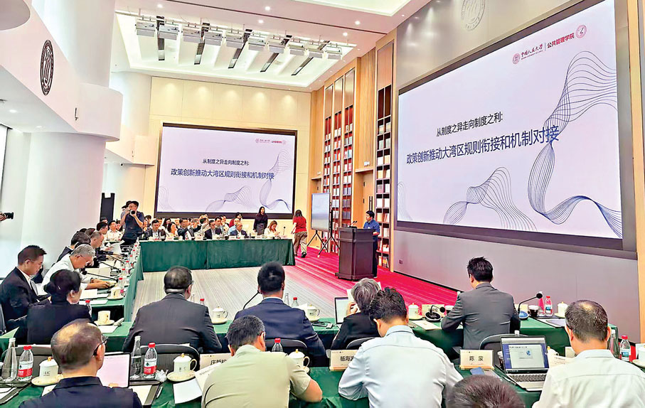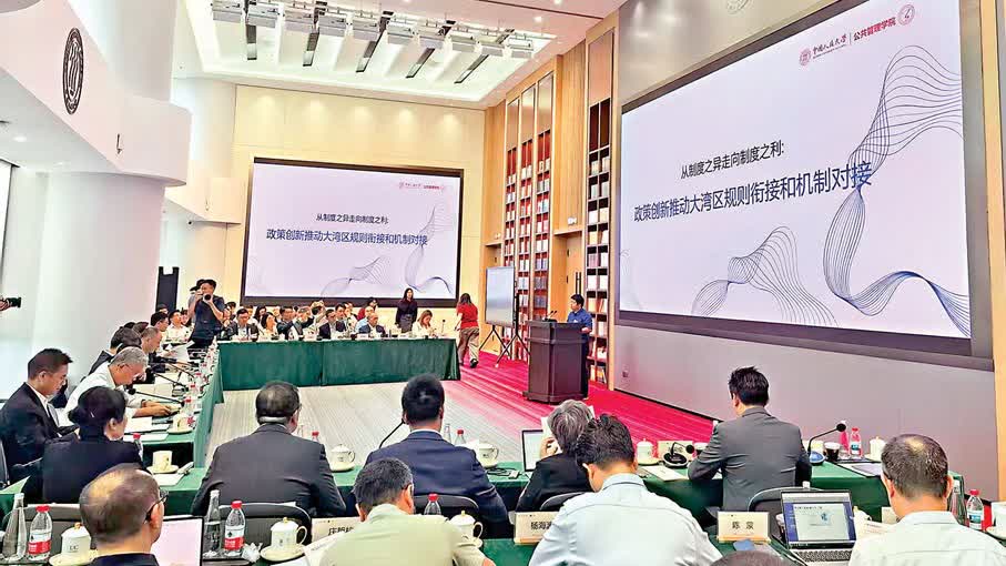 (香港文匯報 記者 李望賢、毛麗娟)第二屆「人民·大公」灣區智匯政策圓桌會於8月29日在中國人民大學深圳研究院前海院區舉行,會議由中國人民大學與香港大公文匯傳媒集團聯合舉辦。來自粵港澳三地的政府、企業、高校和研究機構代表再聚前海,圍繞「強化大灣區規則銜接和機制對接的政策創新」的主題,聚焦政策協同、公共服務、統一市場等大灣區建設的「關鍵堵點」與深圳改革的「核心賽道」展開深入研討,以智庫成果轉化推動制度型開放,以跨域對話凝聚發展共識,為粵港澳大灣區打造高質量發展典範注入堅實智慧動能,共同推動粵港澳大灣區向新而行。