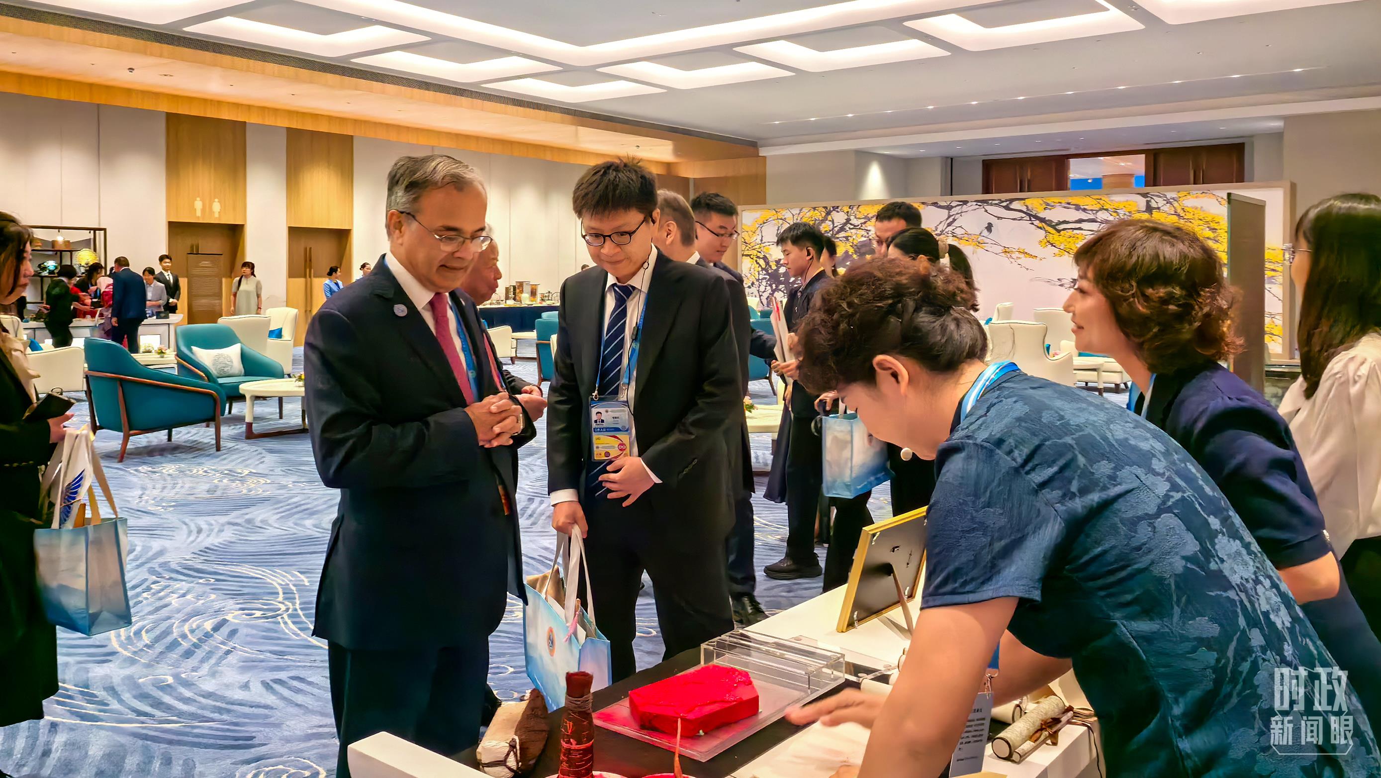 歡迎宴會前,外賓們參觀了楊柳青木版年畫、漆器、古琴、茶藝、風箏等天津非遺展示。文化的交融悄然拉近了彼此的距離。