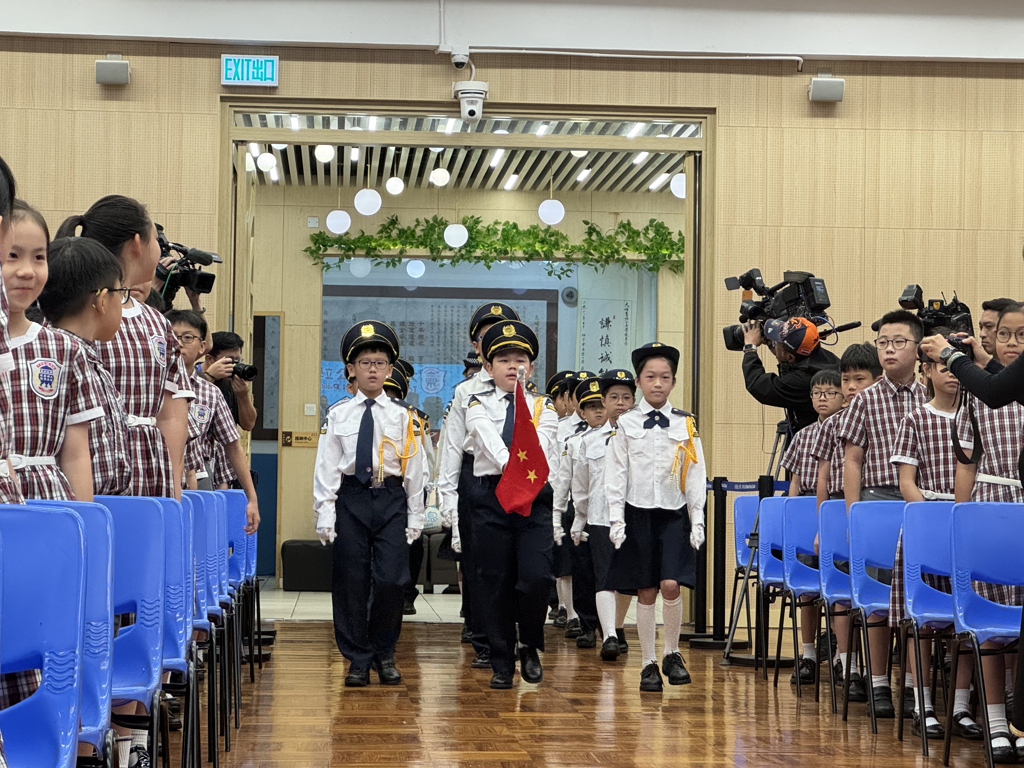 今早約7時半,位於大埔的大埔舊墟公立學校門口前,已有家長和學生陸續進校,開啟新學年。大埔舊墟公立學校開學禮於8時半舉行,並由學生組成的升旗隊進行升旗儀式。
