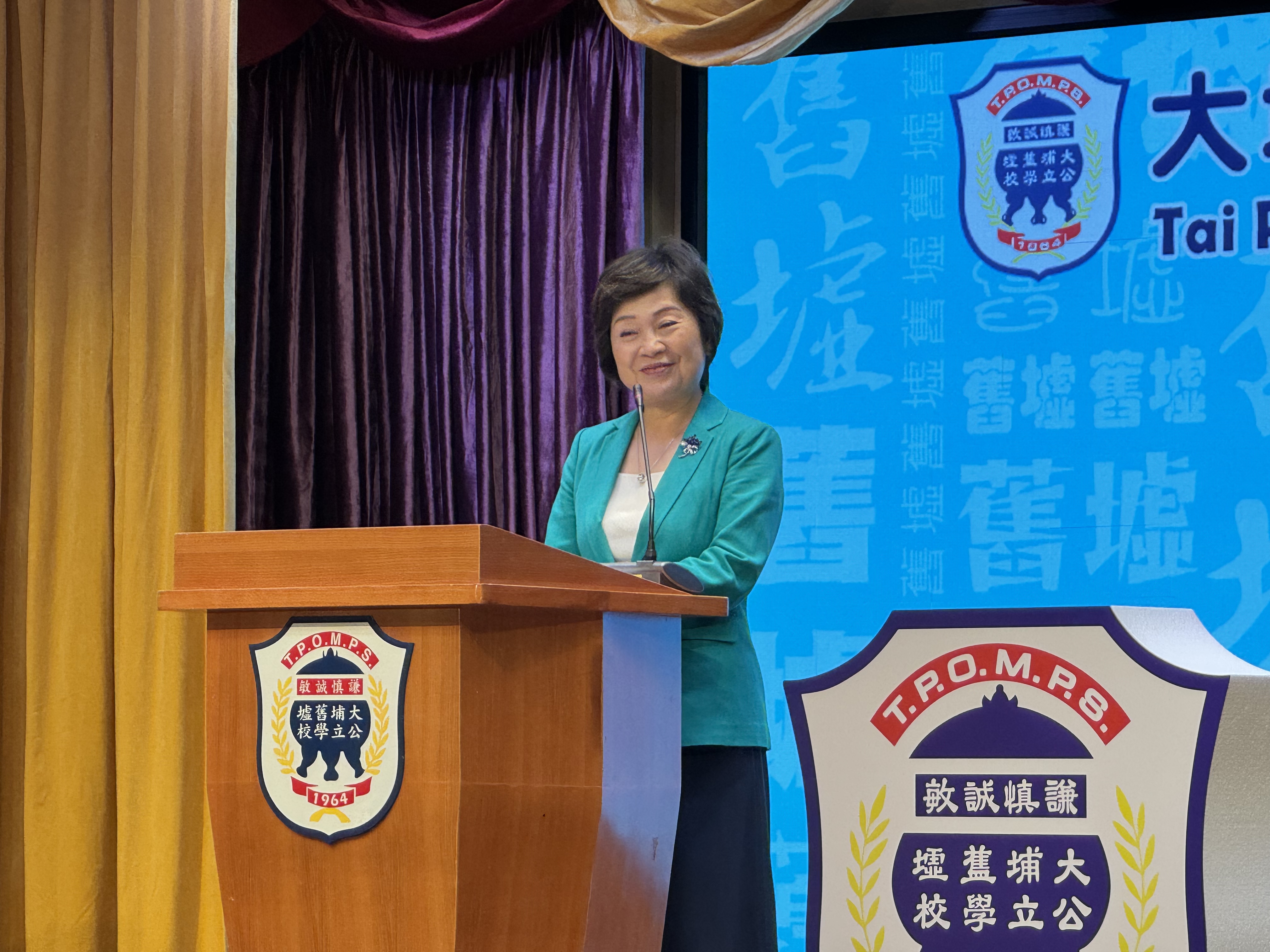 大埔舊墟公立學校校長張麗珠致辭表示,見到同學帶着笑容返校、與師生重逢感到開心,學校為同學準備了兩份禮物,一是「科學禮物」,學校今年起為一年級至四年級推展科學科,二是「世界禮物」,學校計劃組織學生前往內地及世界其他國家和地區,讓同學走出課室,開闊視野。張麗珠期望同學們在新學期能做到「認識自己、敢於承擔、主動糾正、精益求精」。